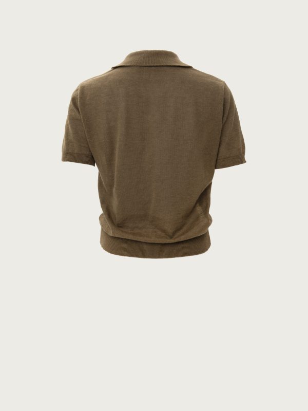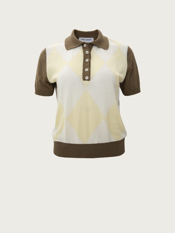 Khaki Polo Knitted T-Shirt With Rhombus Pattern