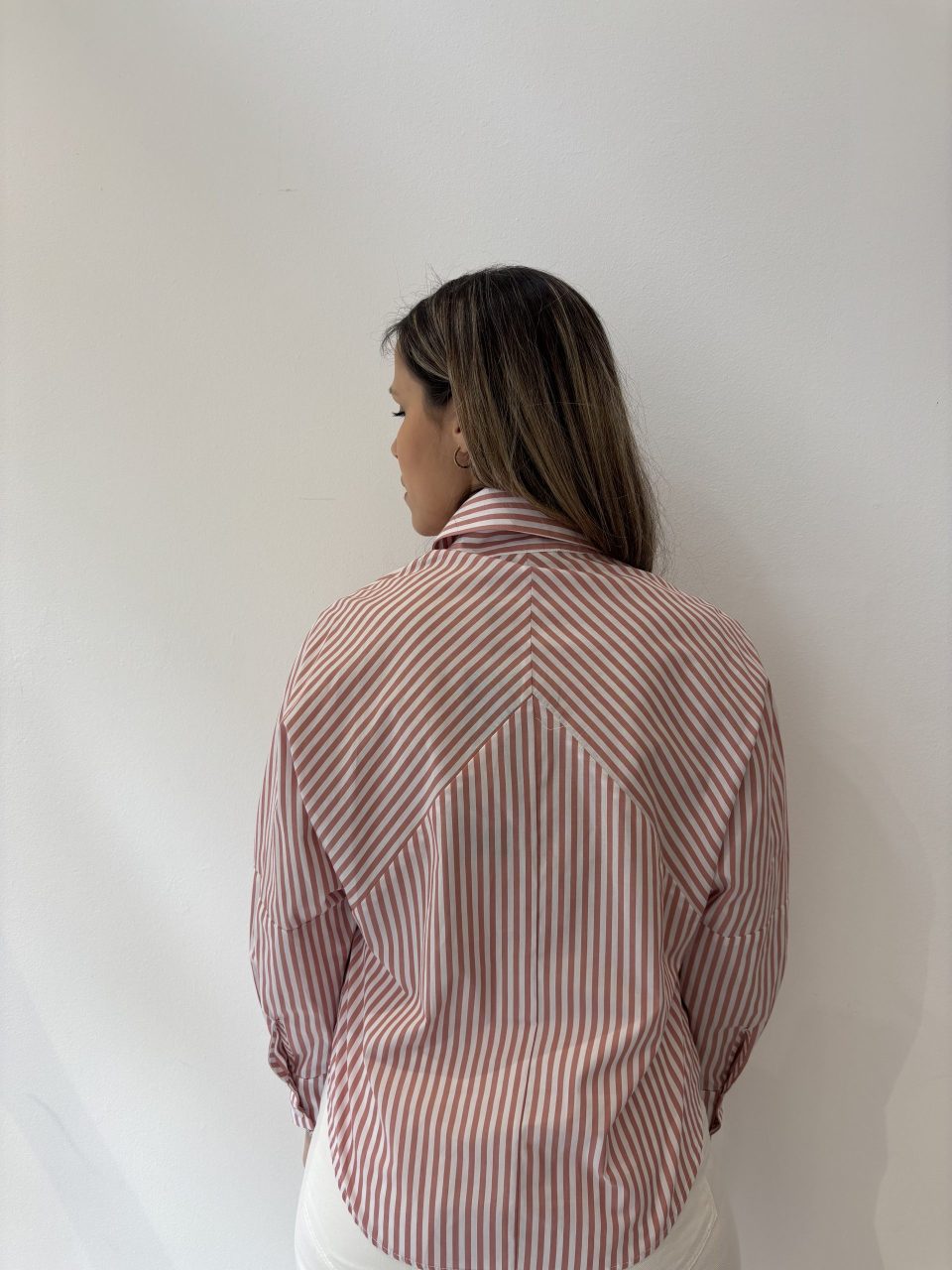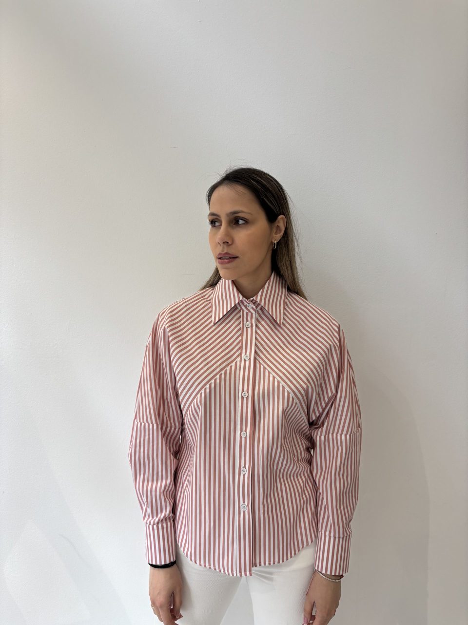 Ριγέ πουκάμισο σε ροζ χρώμα με λευκή ρίγα.