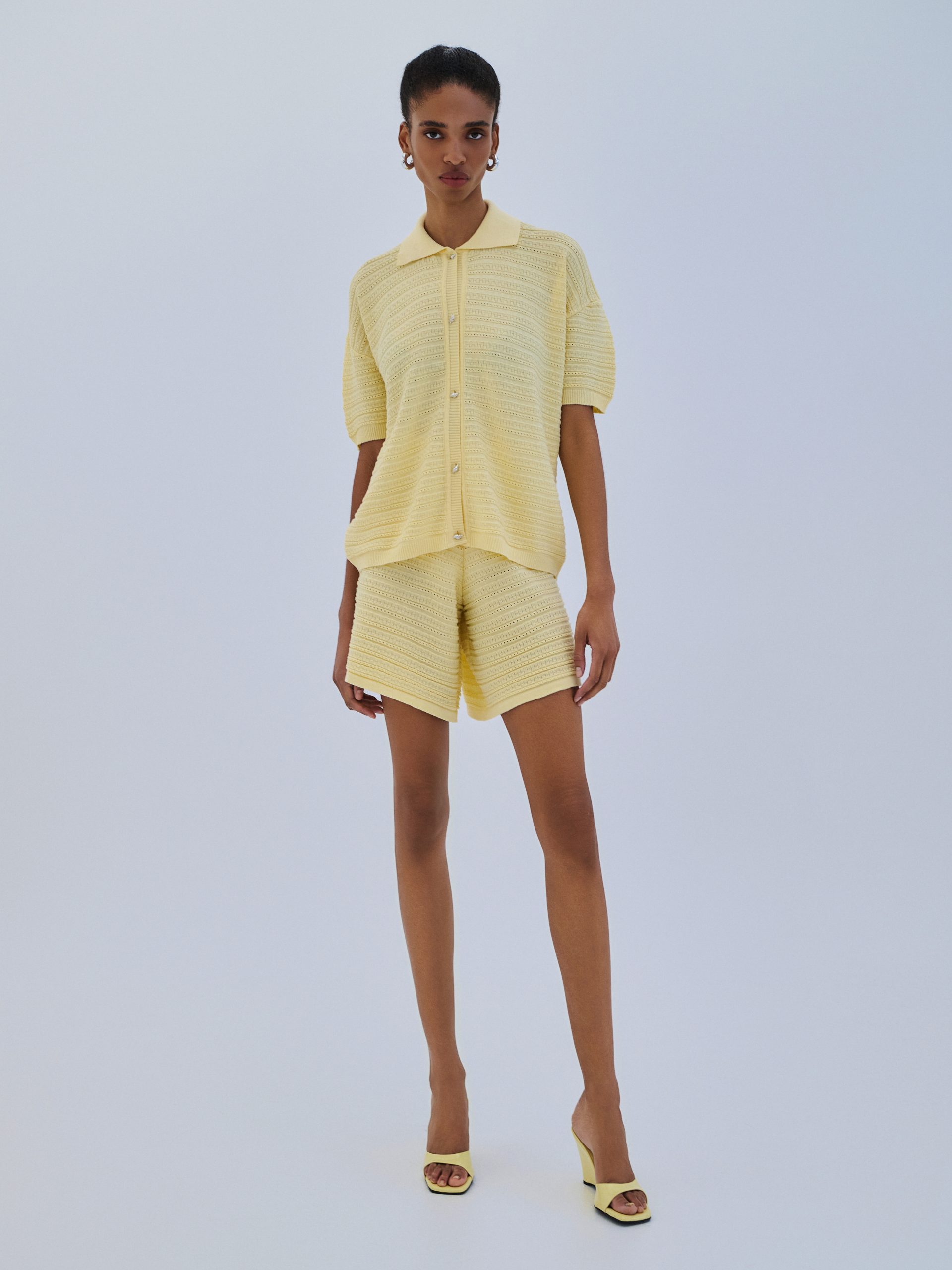 Πλεκτό σορτς σε κίτρινο χρώμα.