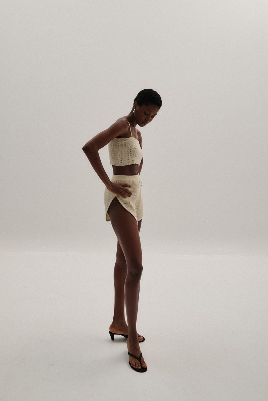 Πλεκτό σορτς διαθέσιμο σε εκρού και μαύρο χρώμα.