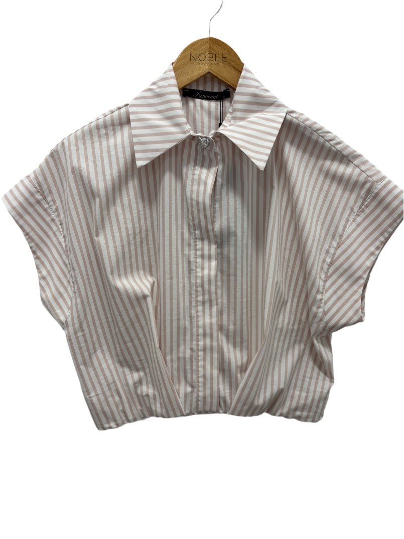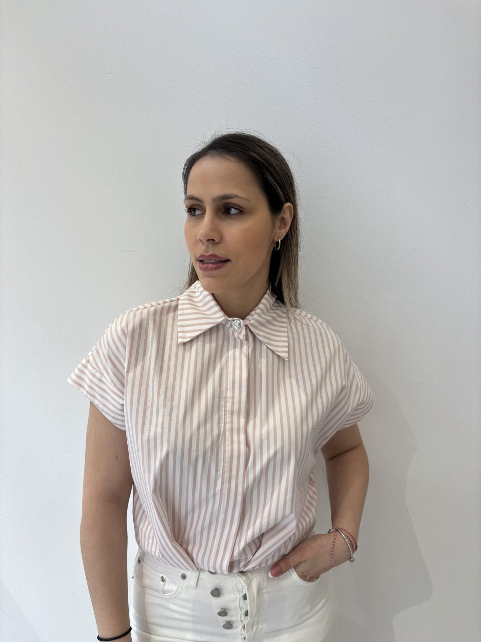 Κοντό ριγέ πουκάμισο σε ροζ χρώμα με λευκή ρίγα και λάμψη.