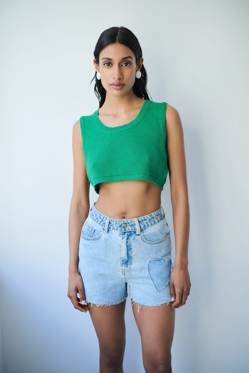 Κοντό πλεκτό αμάνικο τοπ.