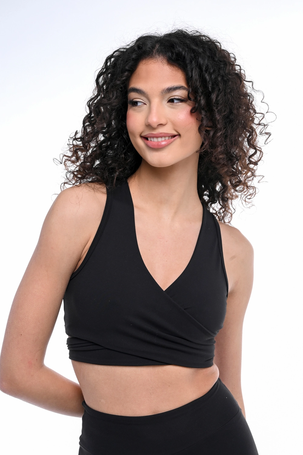 Αθλητικό τοπ με δέσιμο σε μαύρο χρώμα.