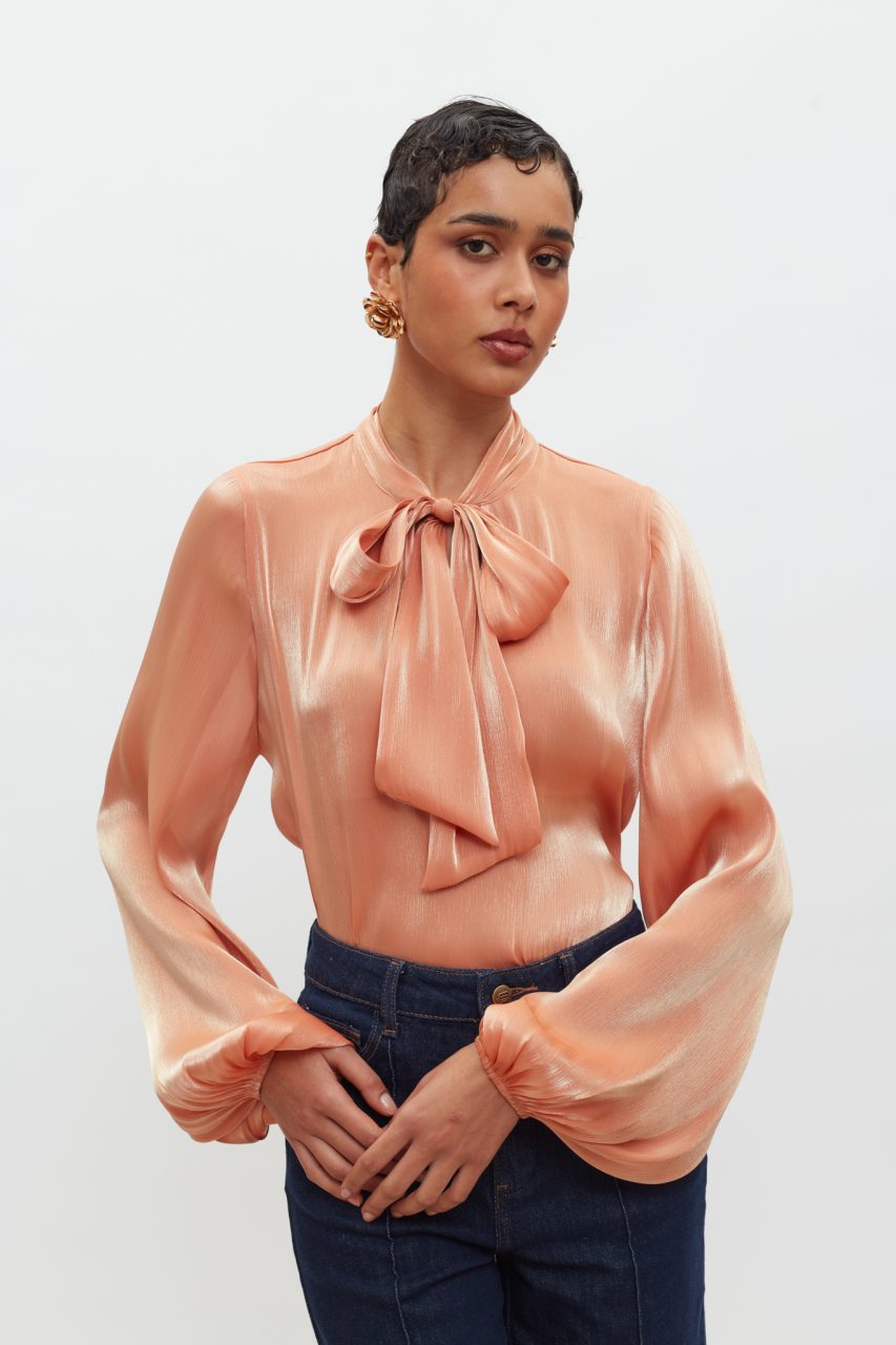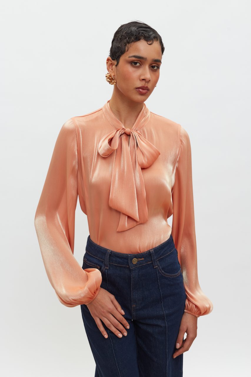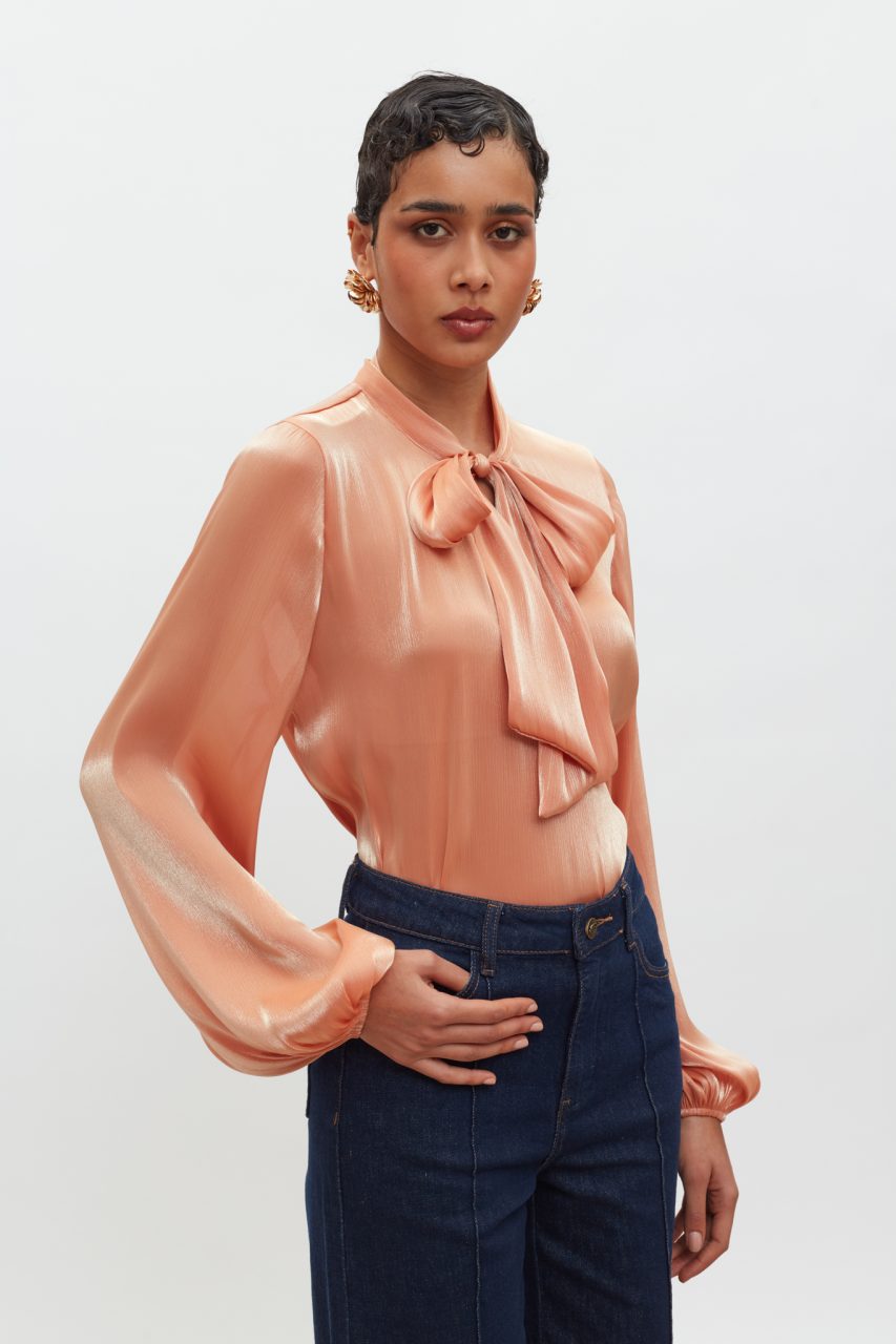 Μακρυμάνικο πουκάμισο με δέσιμο στο λαιμό.