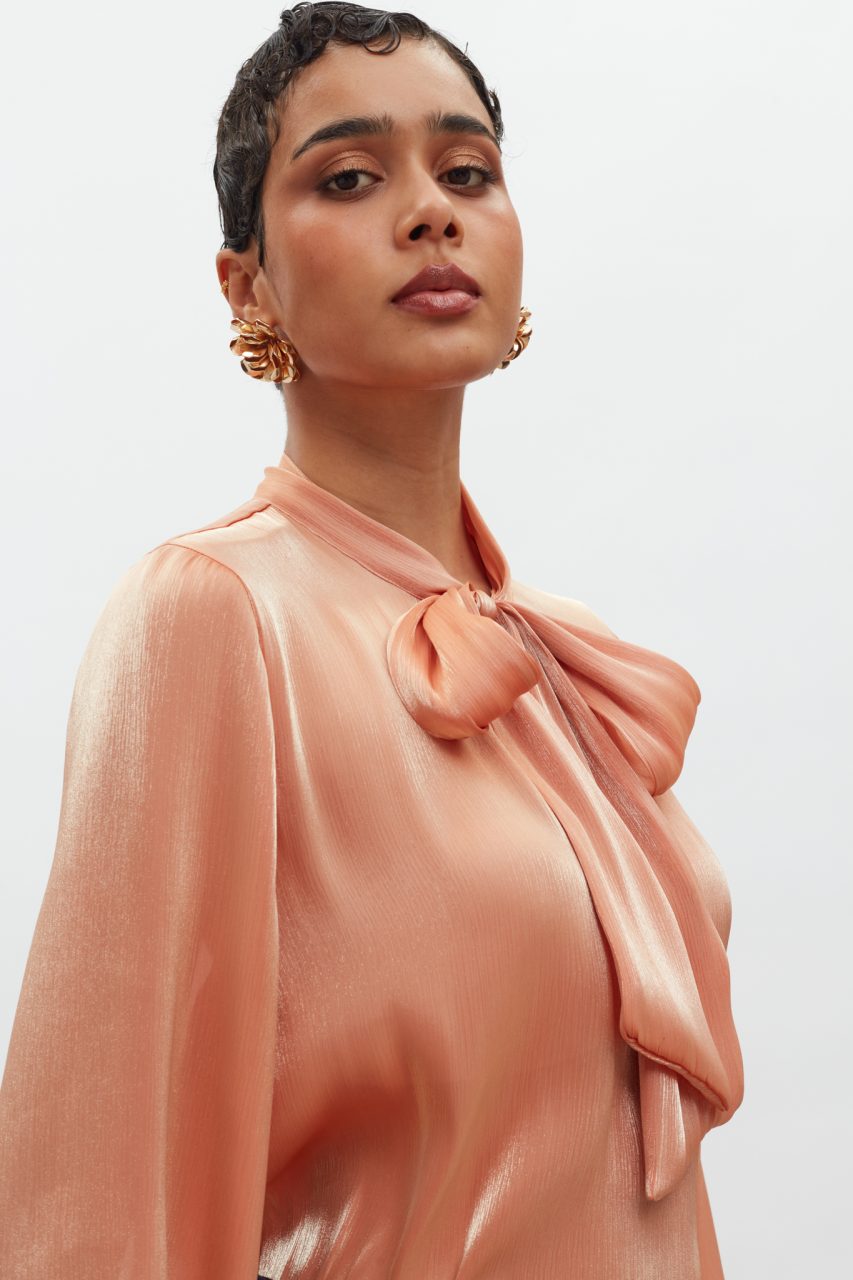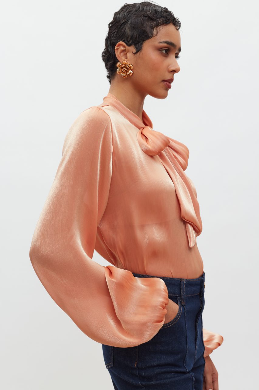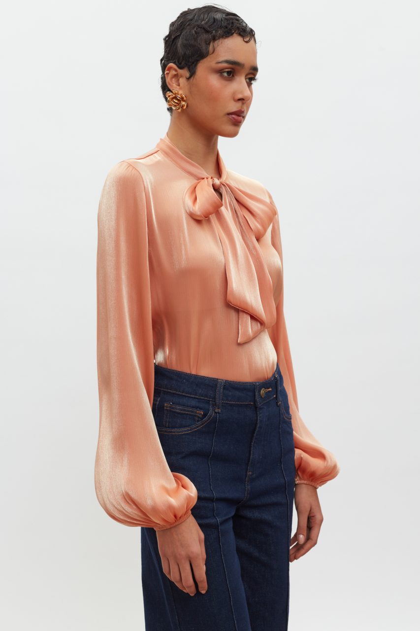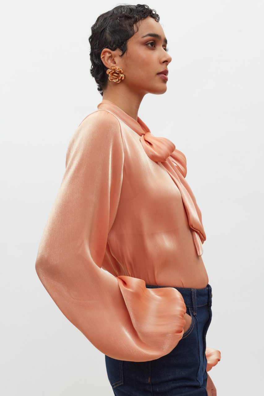 Μακρυμάνικο πουκάμισο με δέσιμο στο λαιμό.