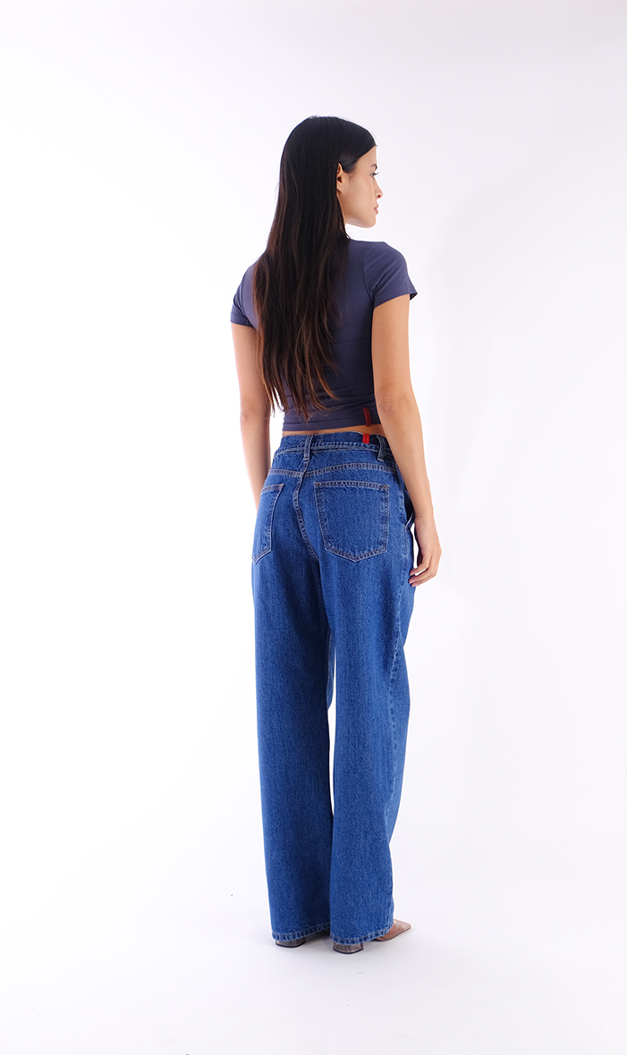 Τζιν σε άνετη γραμμή με αποσπώμενη denim ζώνη.