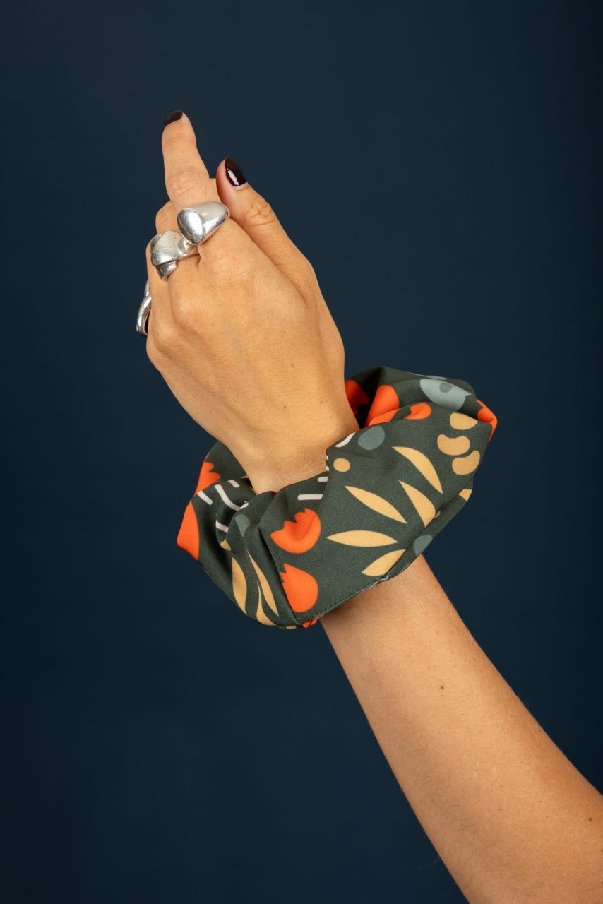 Scrunchie μαλλιών με χρωματιστό μοτίβο.