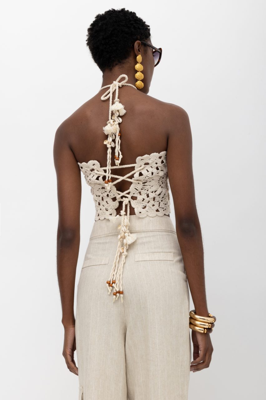 Πλεκτό τοπ με δέσιμο στο λαιμό σε μπεζ χρώμα.