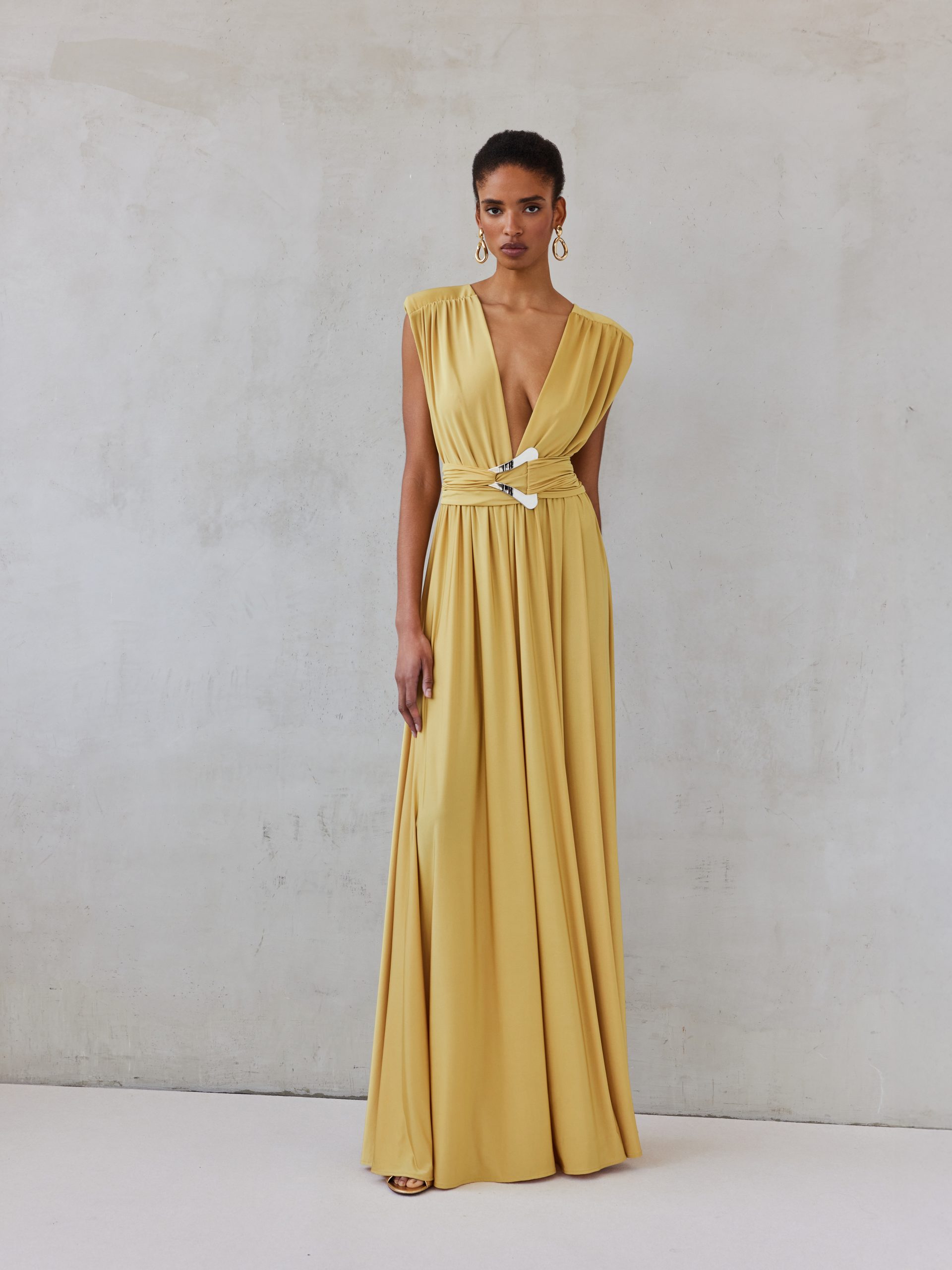 - Διαθέτει ζώνη στο ίδιο ύφασμα με ασημί λεπτομέρεια