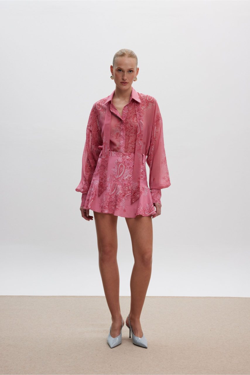 Σορτς/φούστα με λαχούρια σε έντονο ροζ χρώμα.