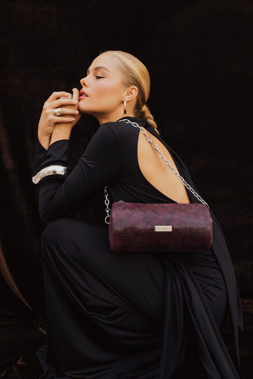 Δερμάτινη τσάντα σε μπορντό χρώμα με python print.