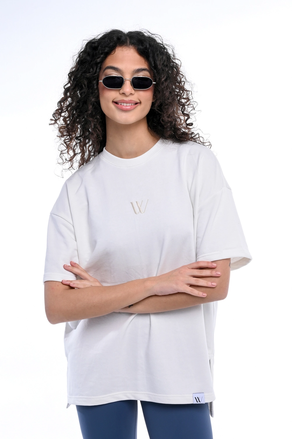 Κοντομάνικο φούτερ τοπ σε εκρού χρώμα.