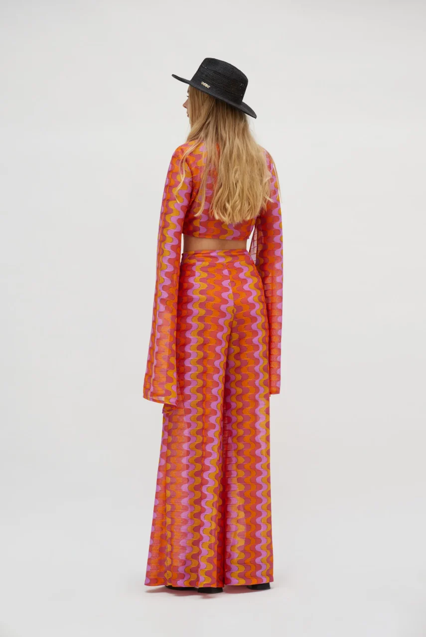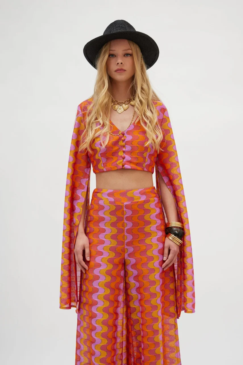Πλεκτό crop τοπ σε αποχρώσεις του ροζ και του πορτοκαλί.