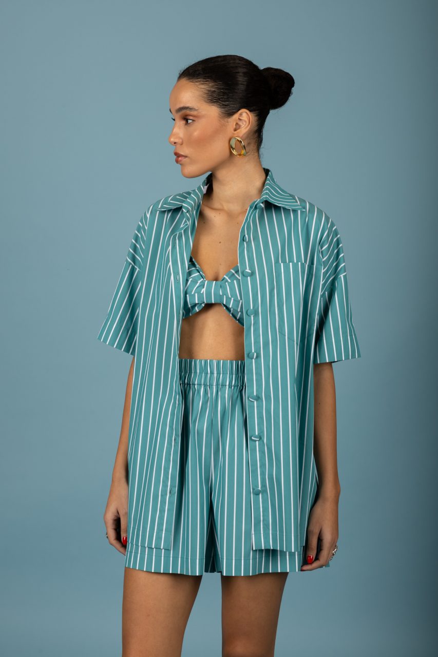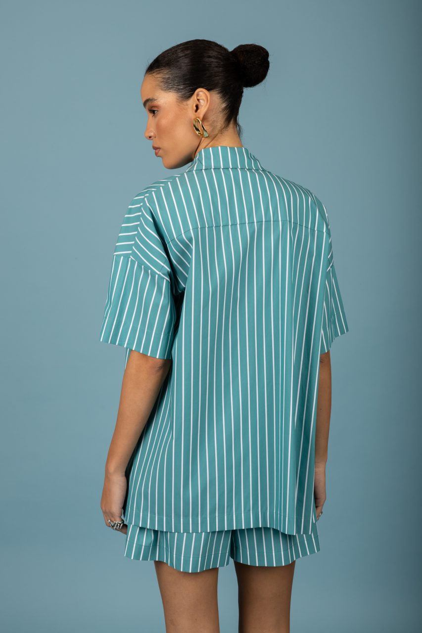 Κοντομάνικο ριγέ πουκάμισο σε πράσινο χρώμα.