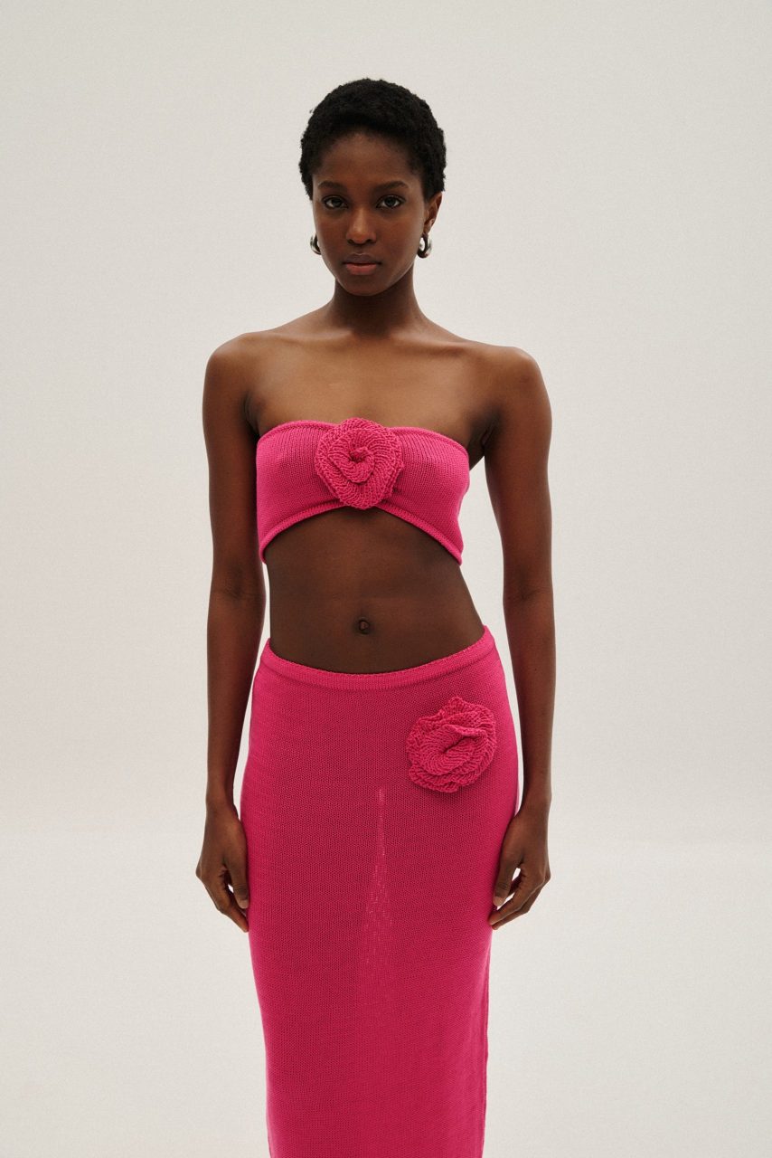 Πλεκτό τοπ σε bra style με λουλούδι σε μαύρο χρώμα.