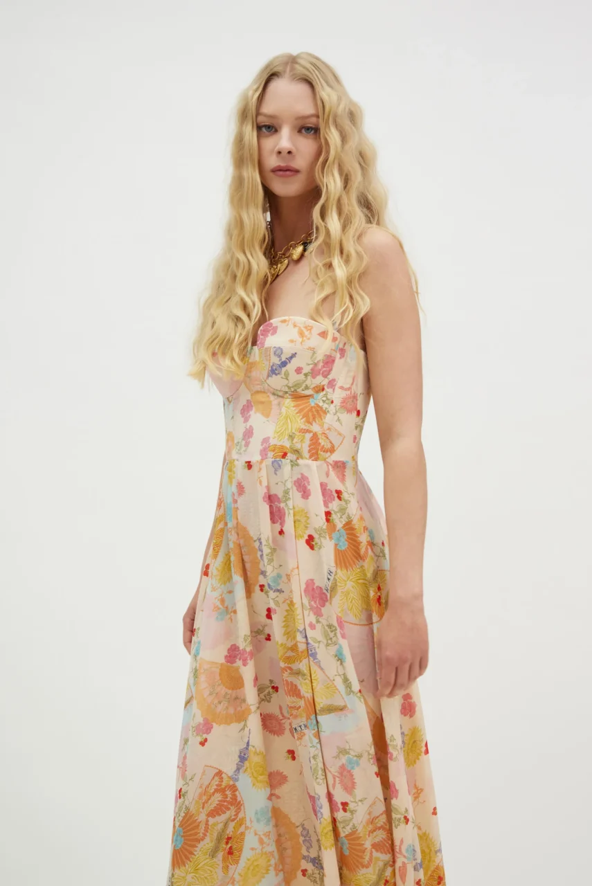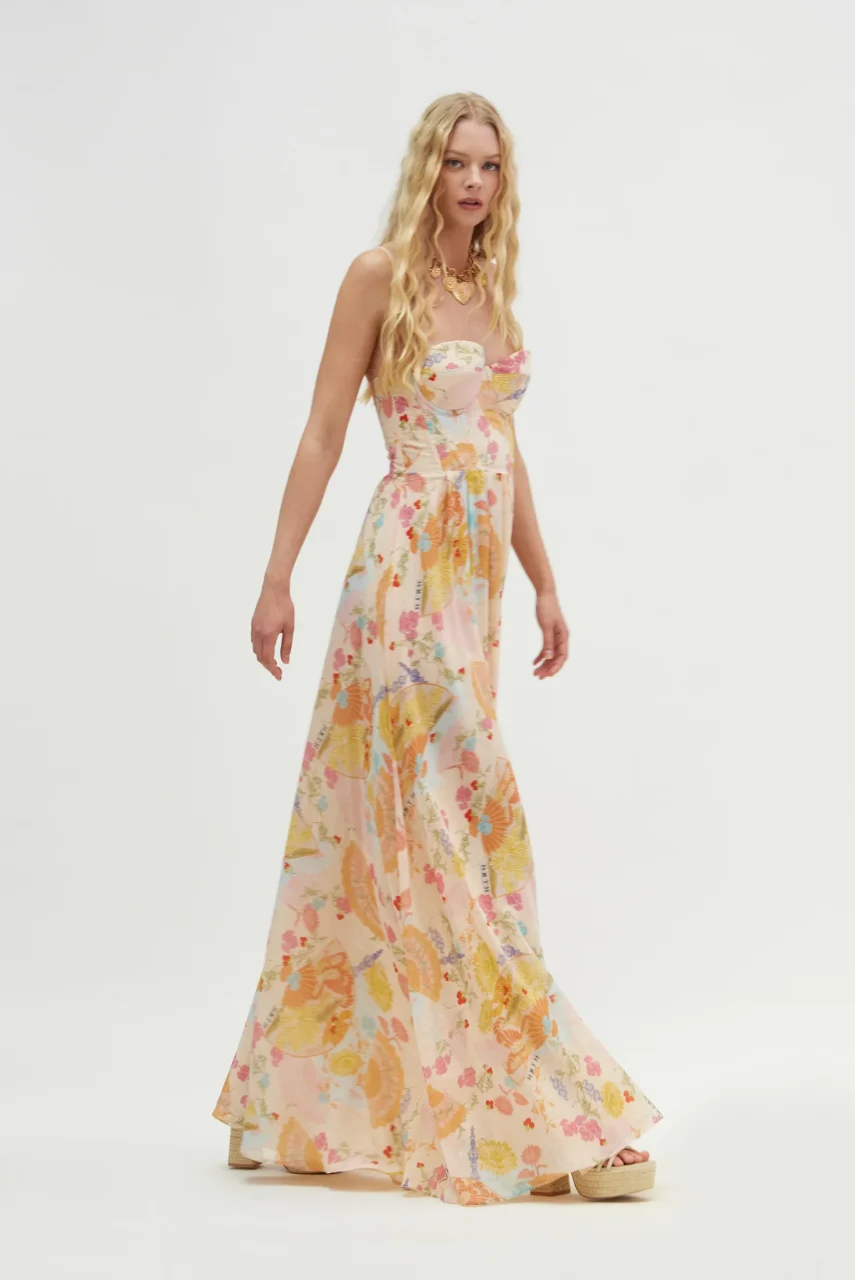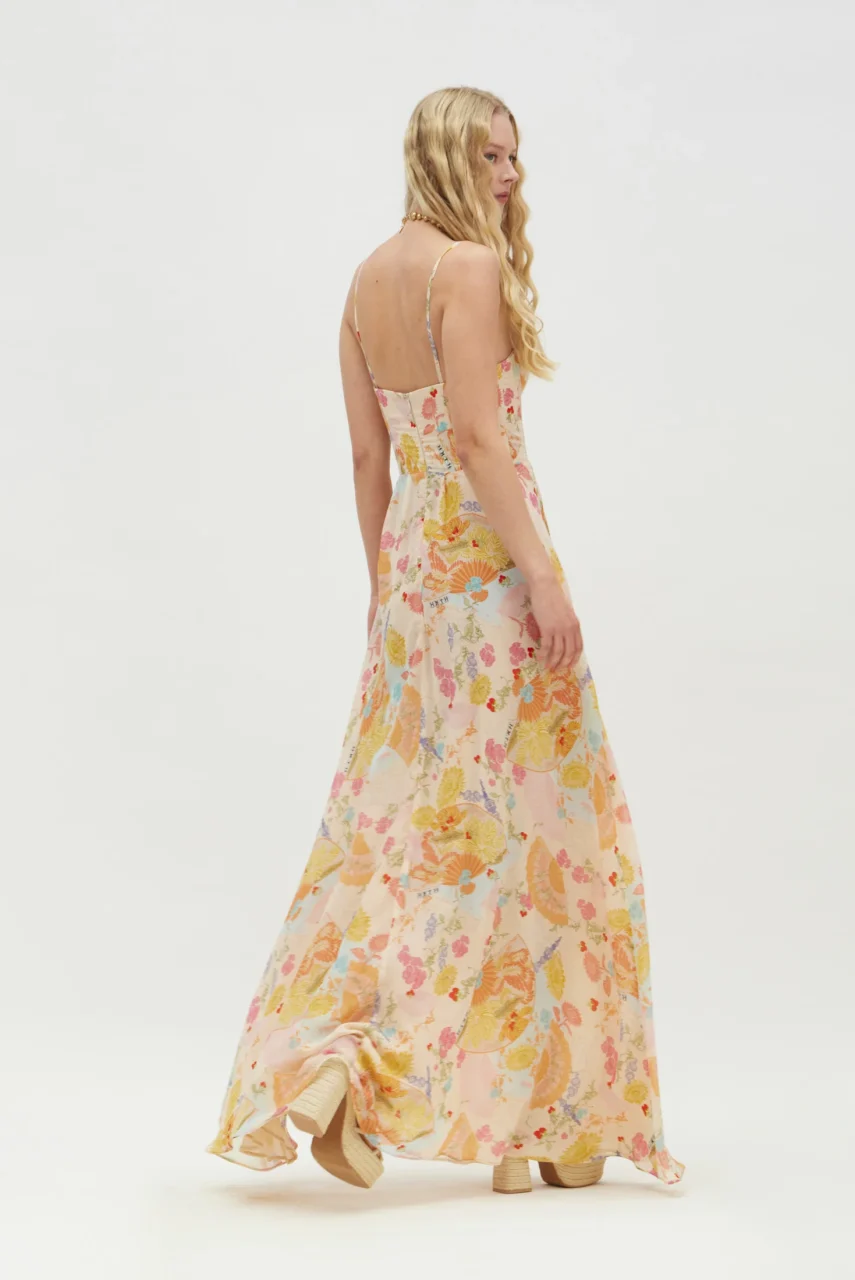 Maxi φόρεμα με βεντάλιες και λουλούδια.