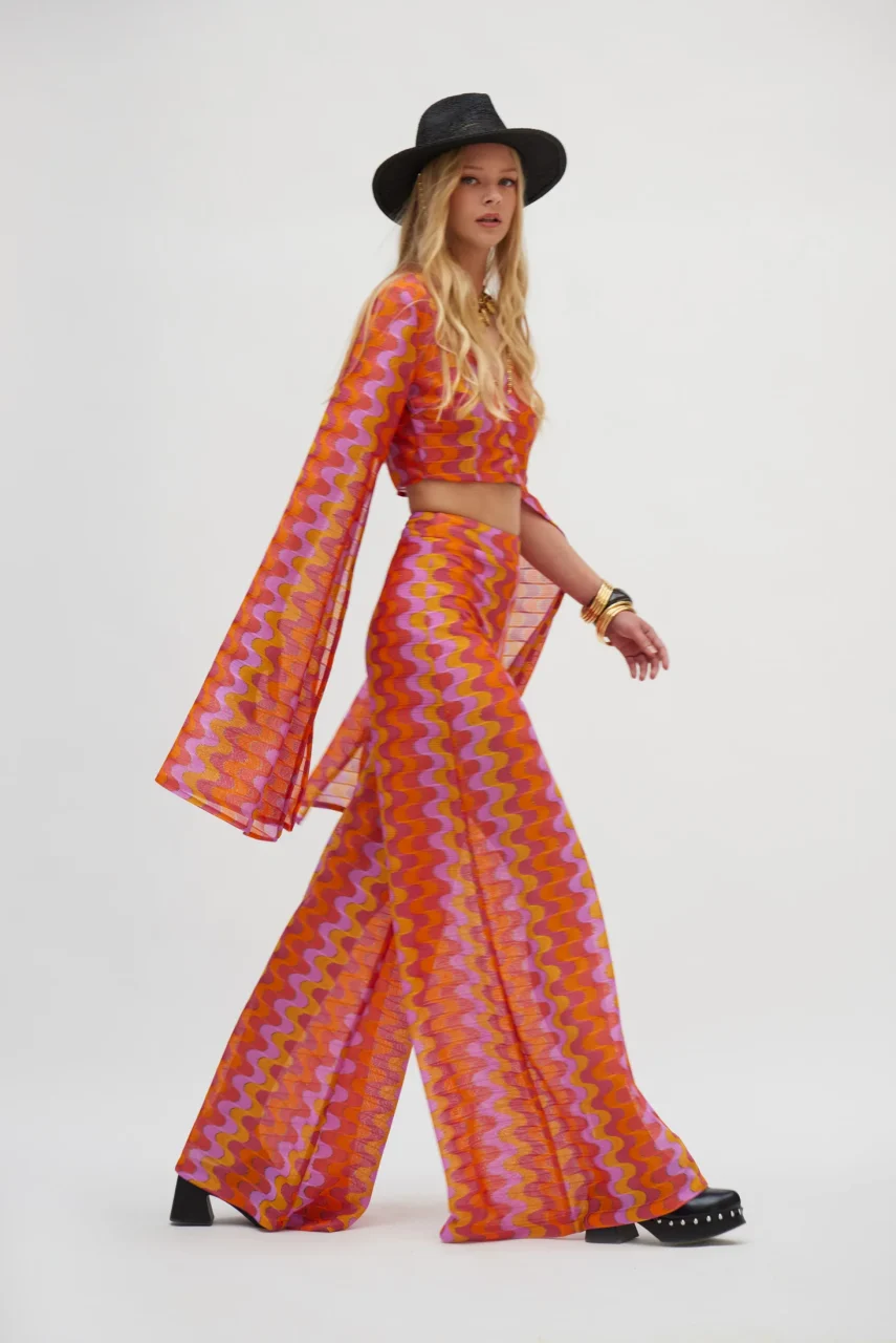 Ψηλόμεσο πλεκτό παντελόνι σε αποχρώσεις του ροζ και του πορτοκαλί.