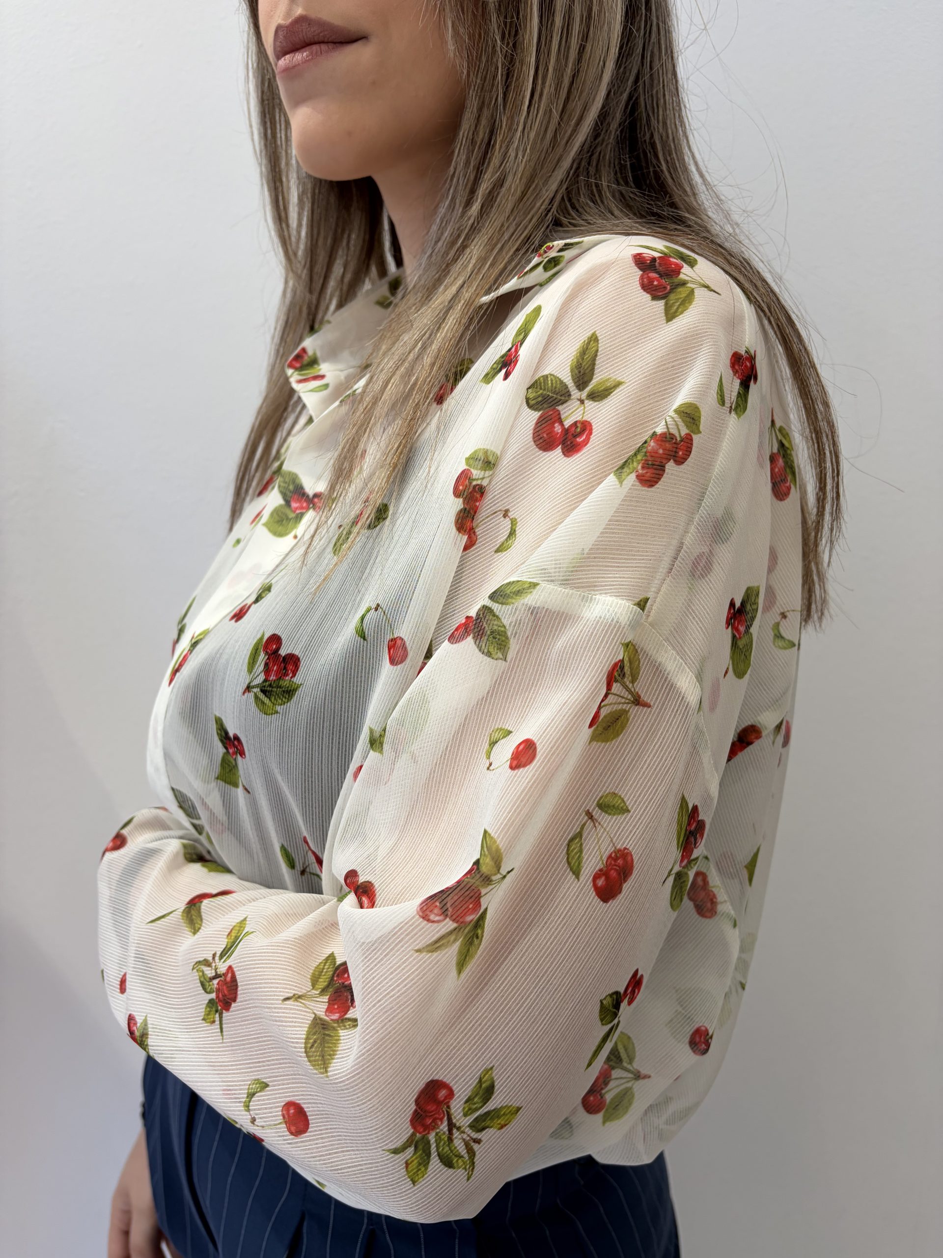 Πουκάμισο one size με κεράσια σε λευκό φόντο.