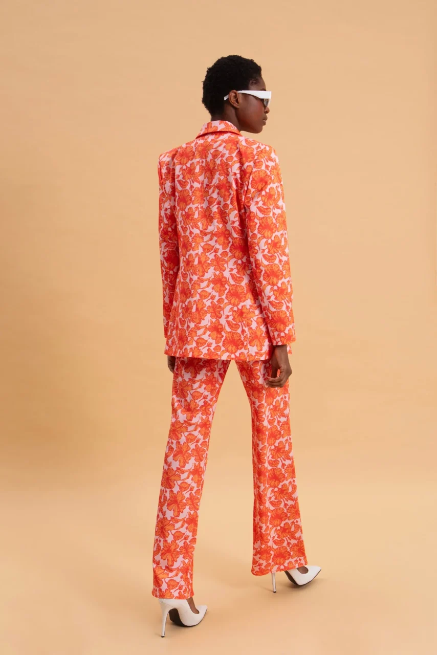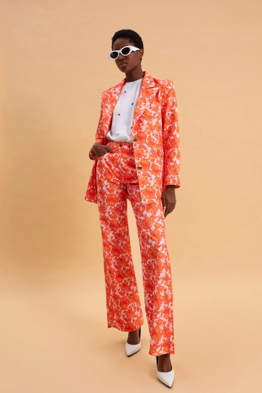 Ψηλόμεσο παντελόνι με floral print σε αποχρώσεις του κοραλί και του λευκού.