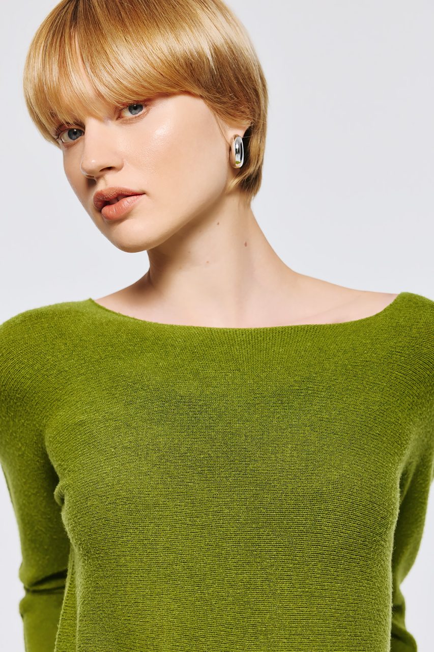 One size πουλόβερ με στρογγυλή λαιμόκοψη σε λαδί χρώμα.