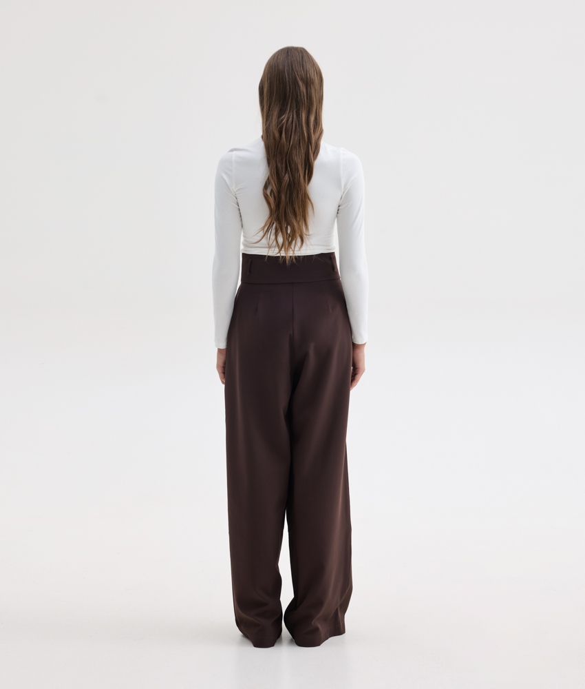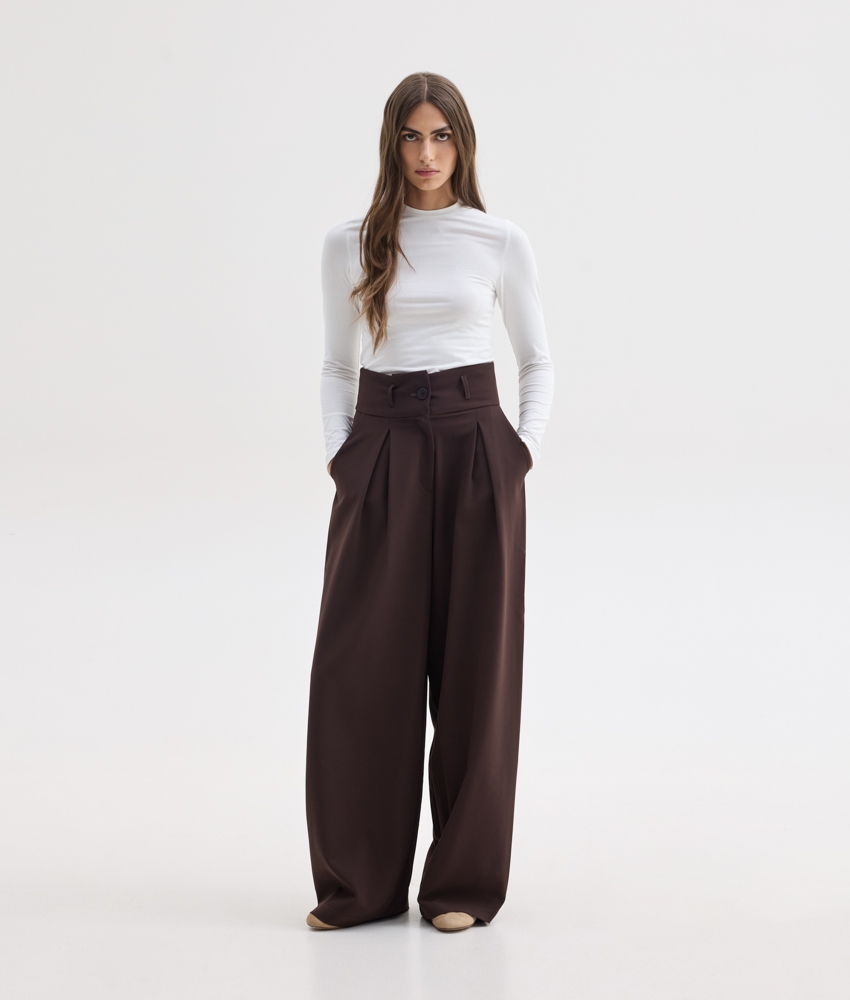 Υφασμάτινο παντελόνι σε καφέ χρώμα.