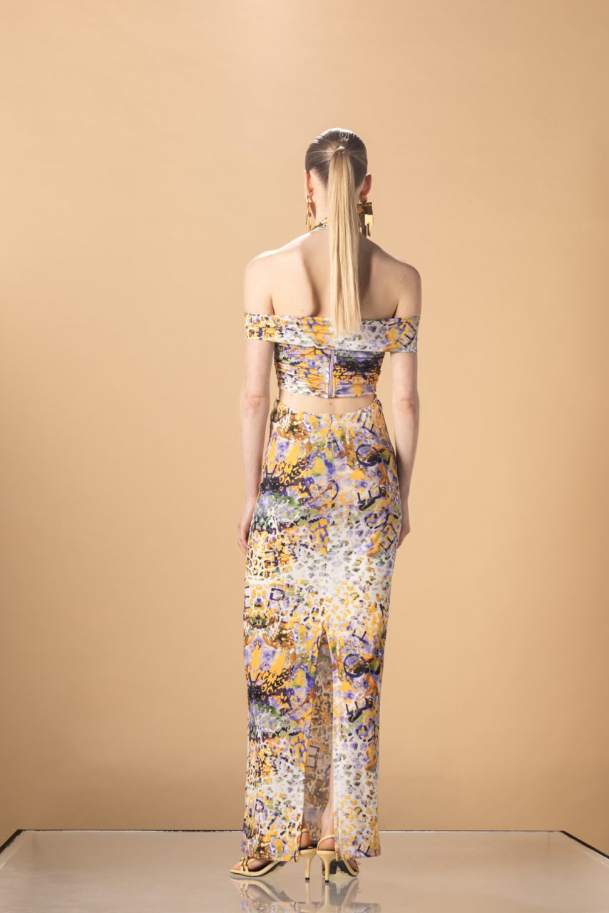 Maxi φόρεμα με τους ώμους έξω.