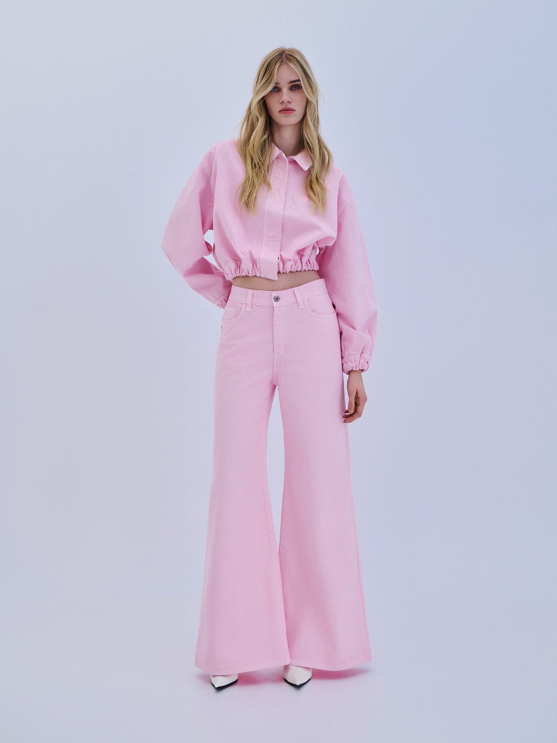 Denim Trousers Flared – Baby Pink