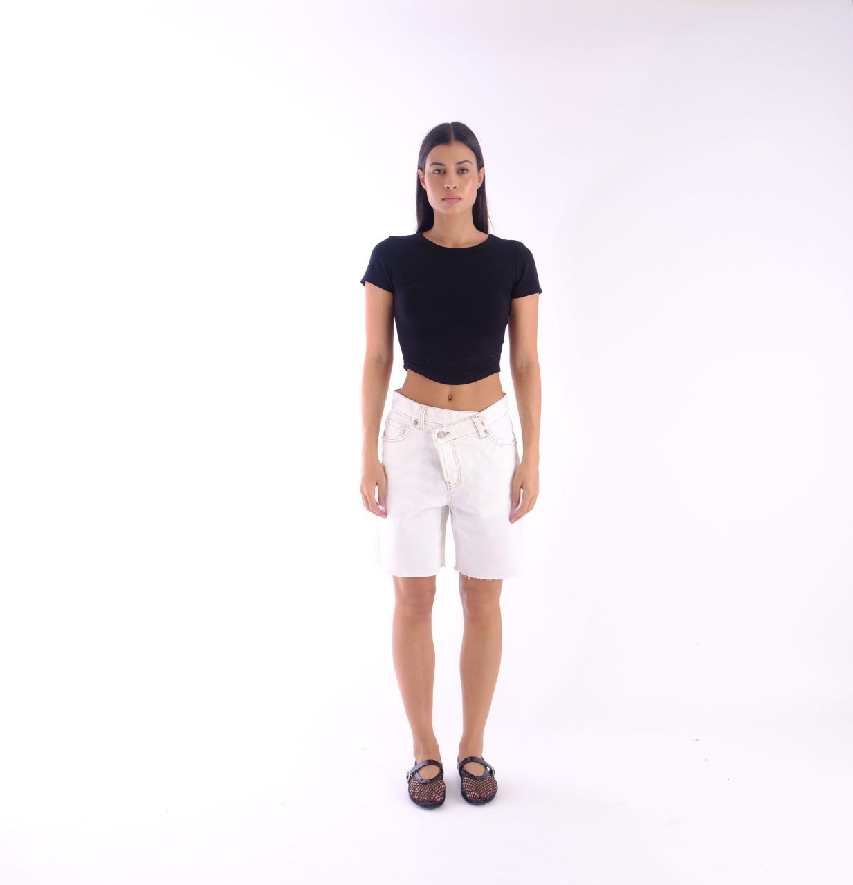 Τζιν σορτς με ασύμμετρο κούμπωμα.