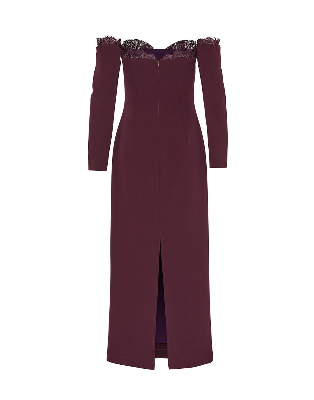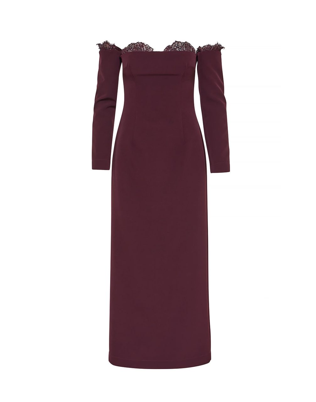 Midi φόρεμα σε μπορντό χρώμα με λεπτομέρειες δαντέλας.