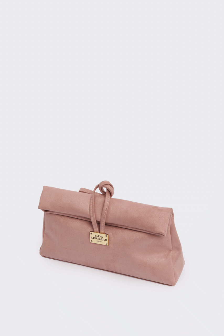 Τσάντα καρπού βελουτέ σε ροζ χρώμα.