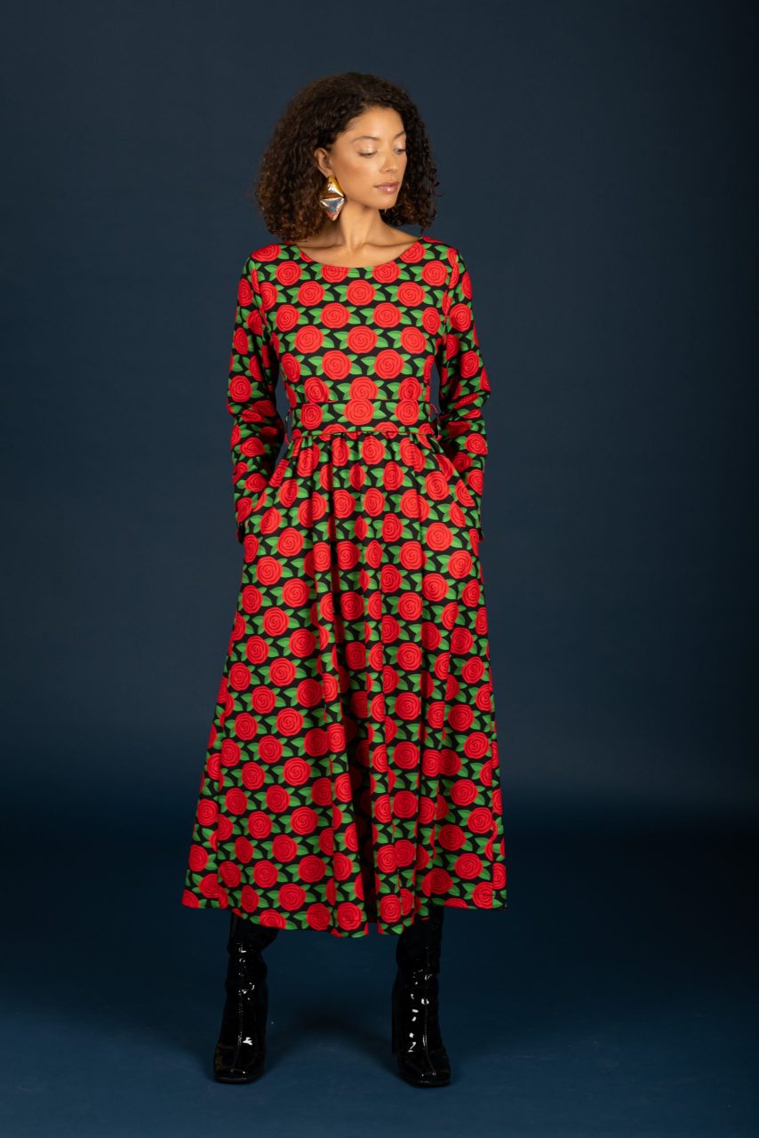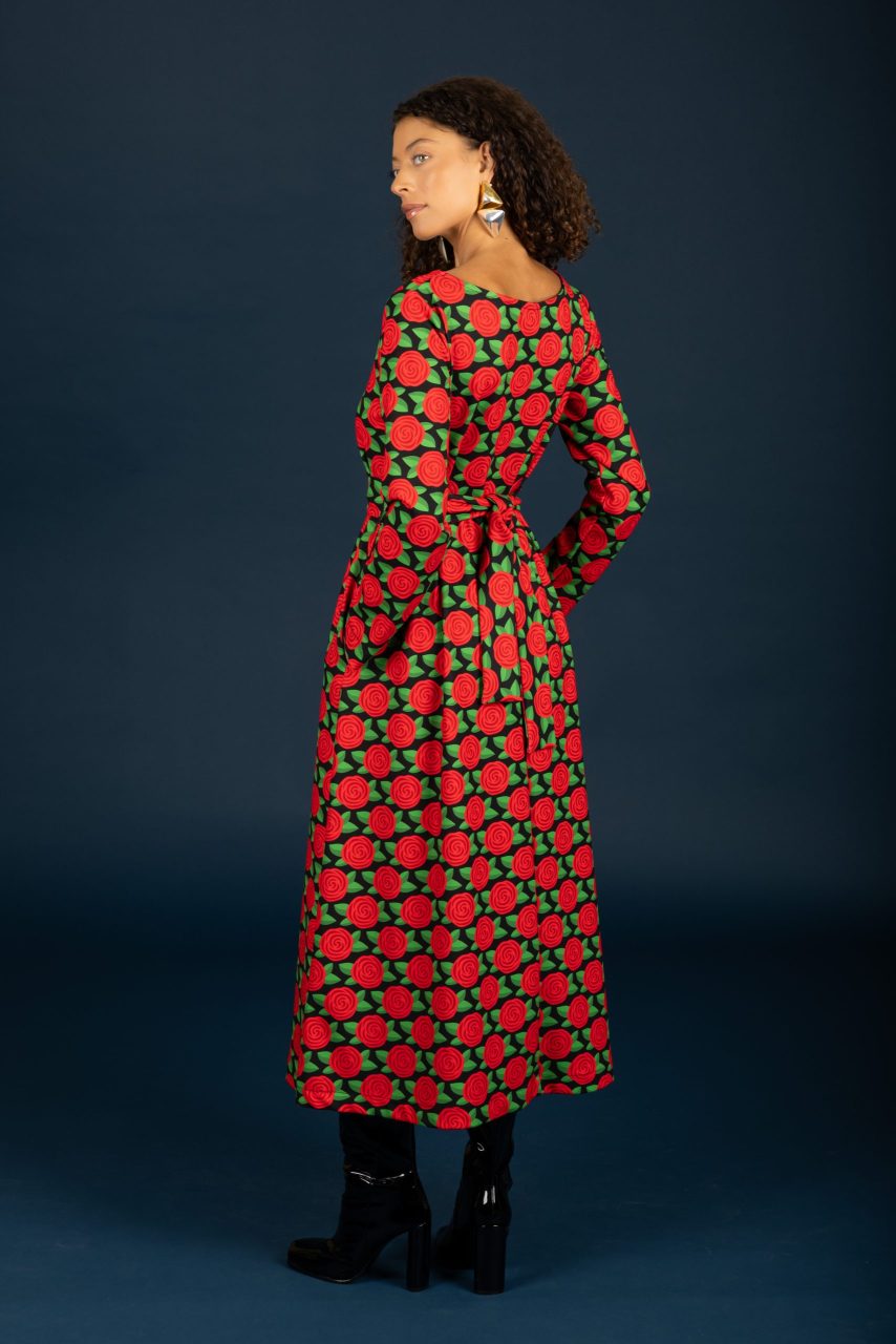Μακρύ φόρεμα με print σε κόκκινο χρώμα.
