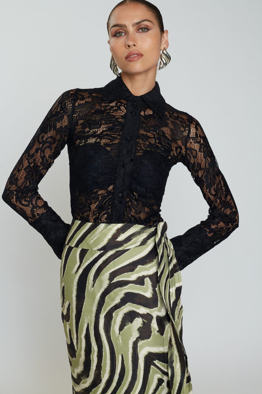 Δαντέλα πουκάμισο σε μαύρο χρώμα.
