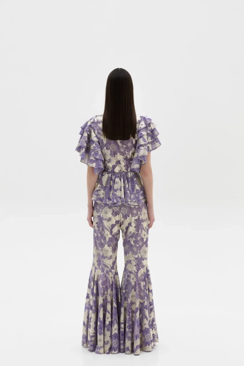 Lurex παντελόνα με βολάν.