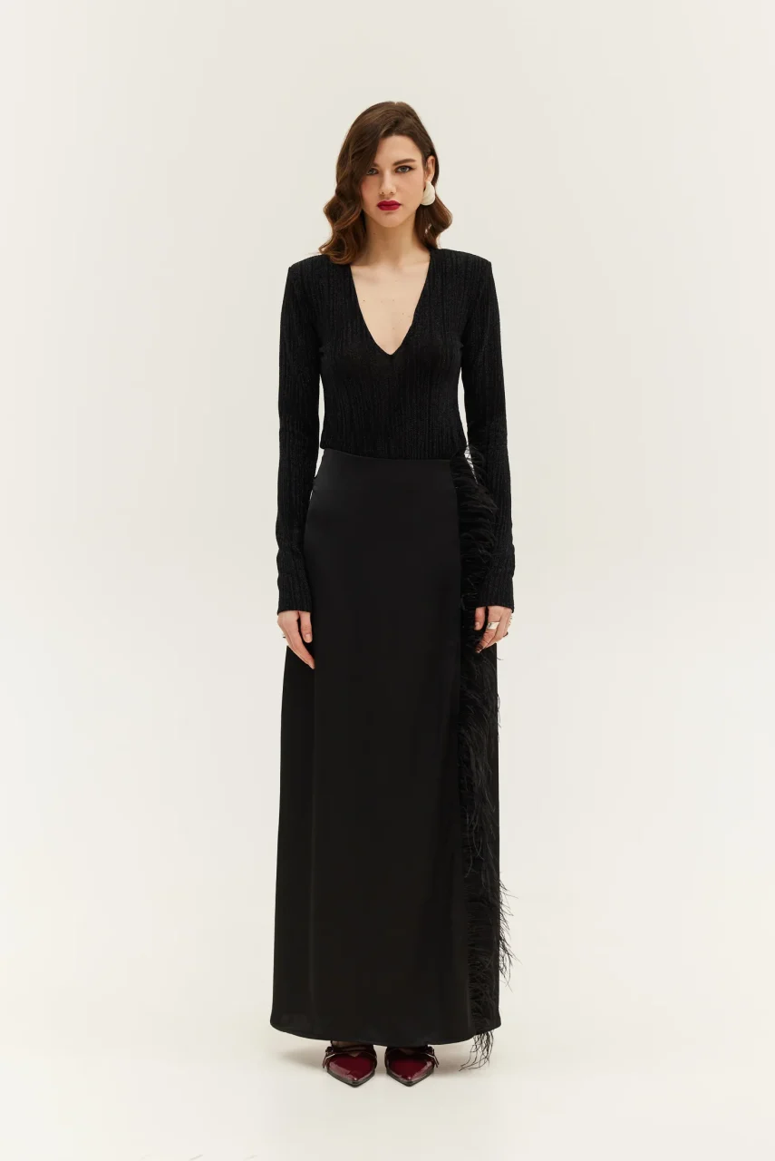 Μακρυμάνικο κορμάκι με διακριτικό glitter στο ύφασμα σε μαύρο χρώμα.