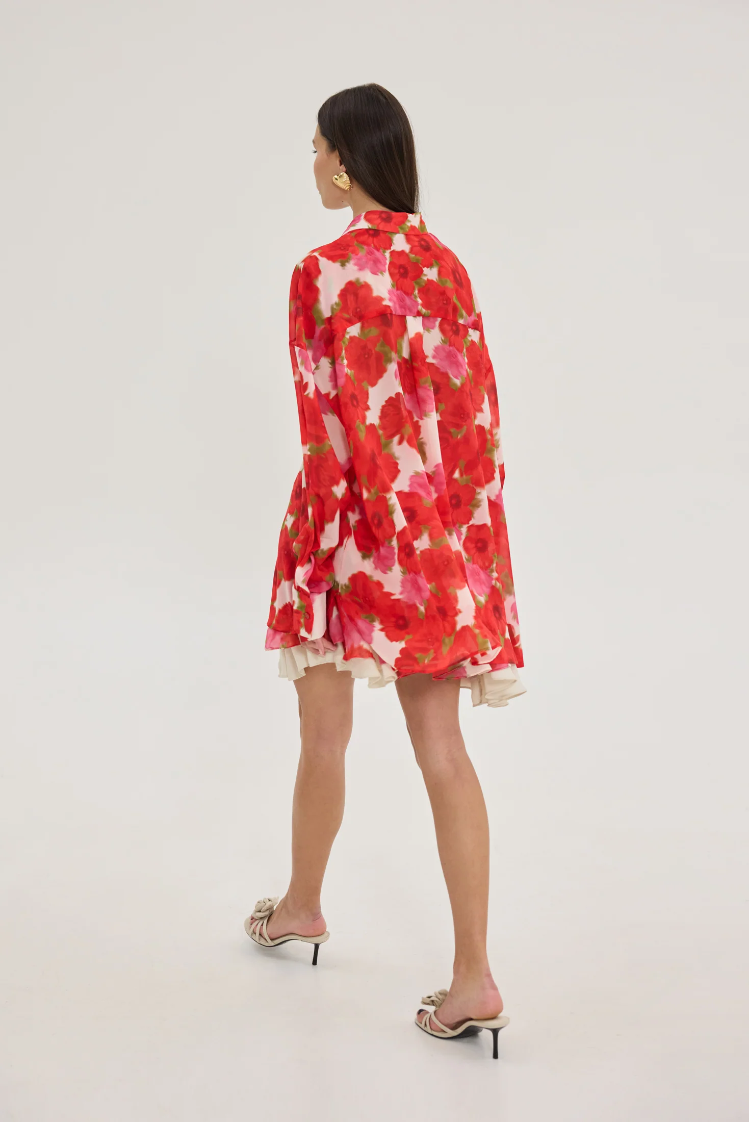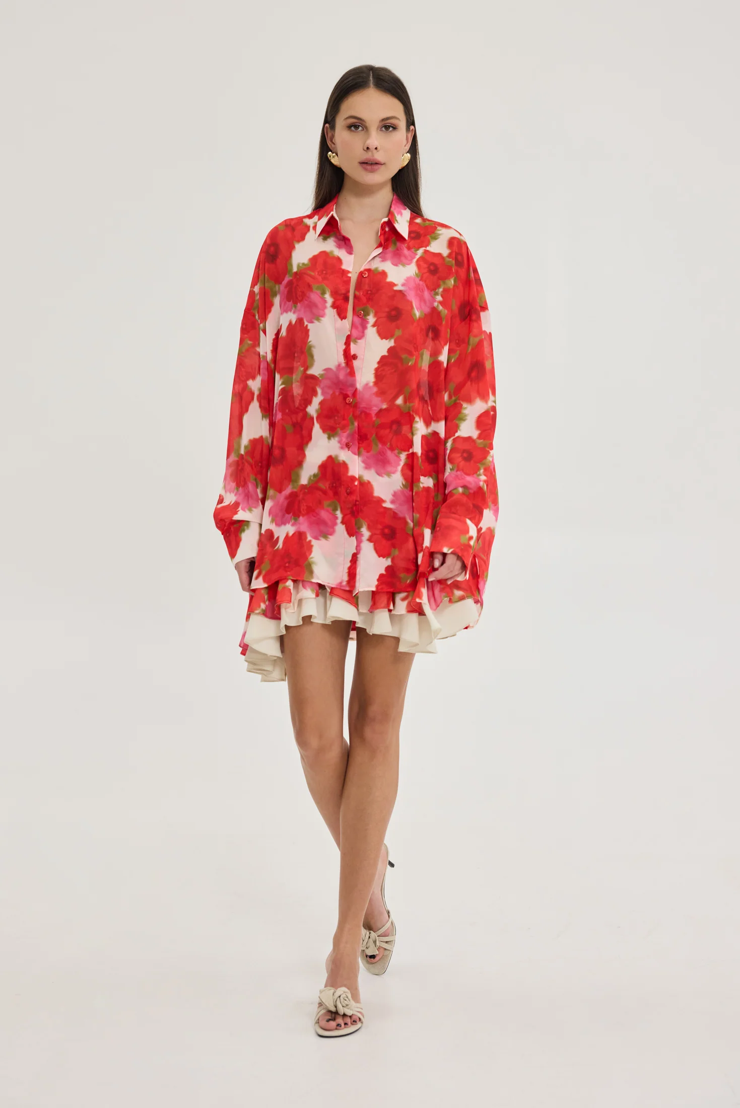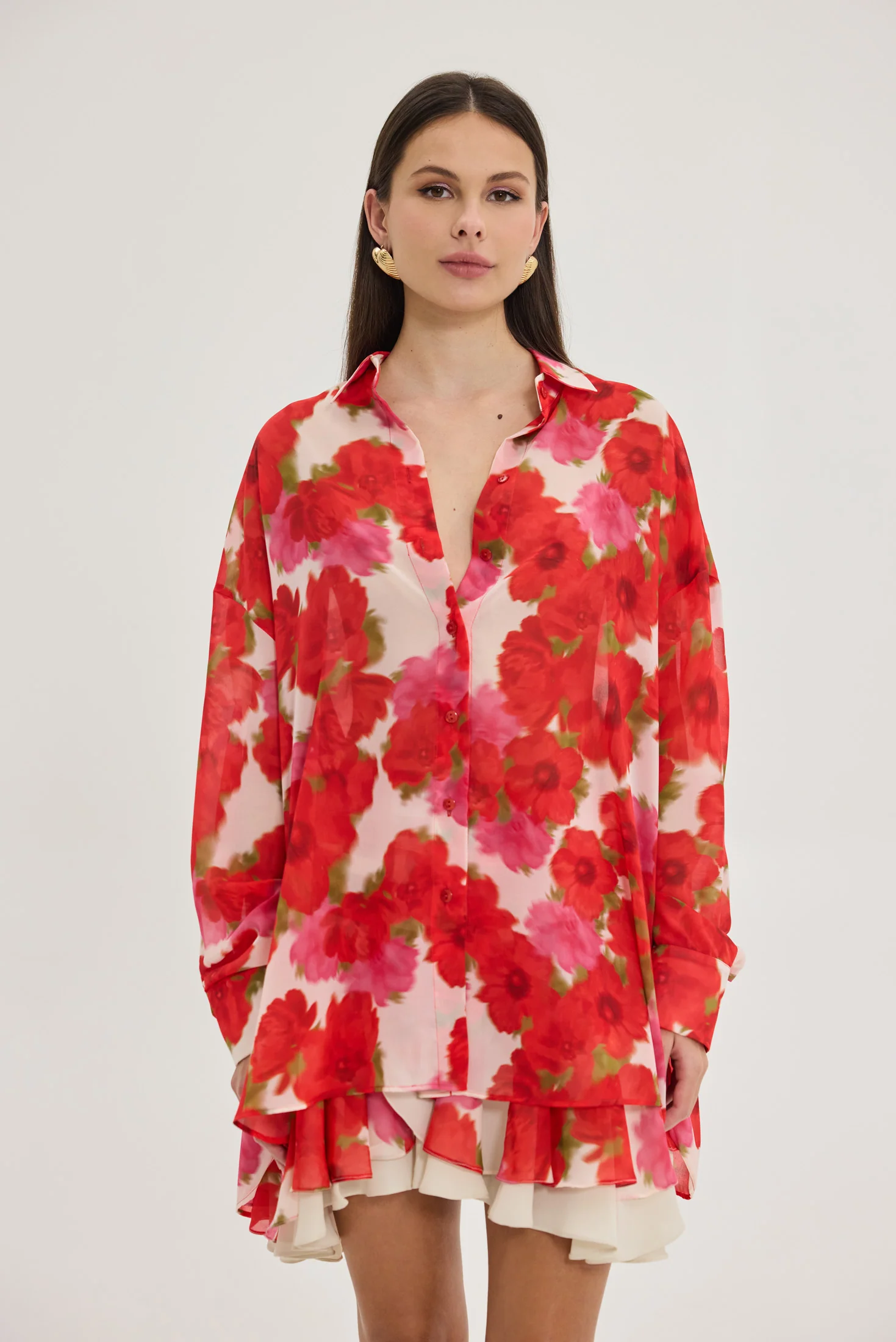 Πουκάμισο με pattern με λουλούδια σε κόκκινες αποχρώσεις.