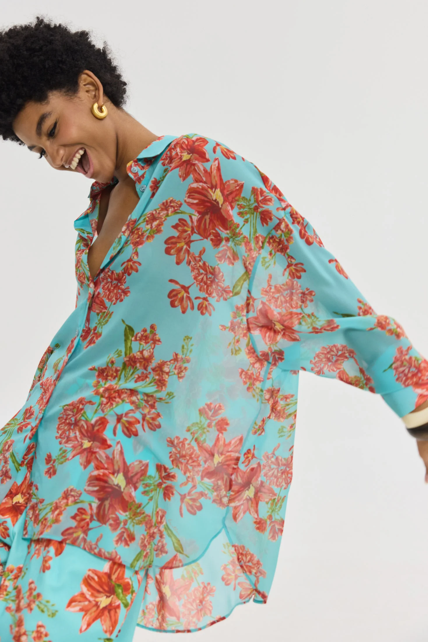 Πουκάμισο με pattern με λουλούδια σε aqua φόντο.