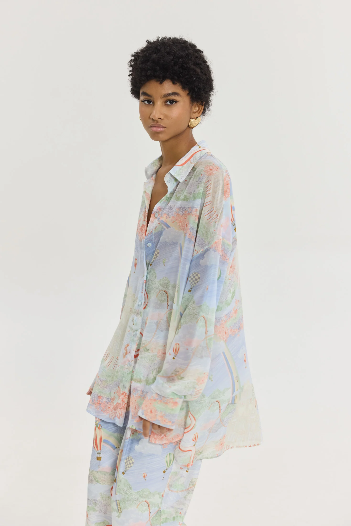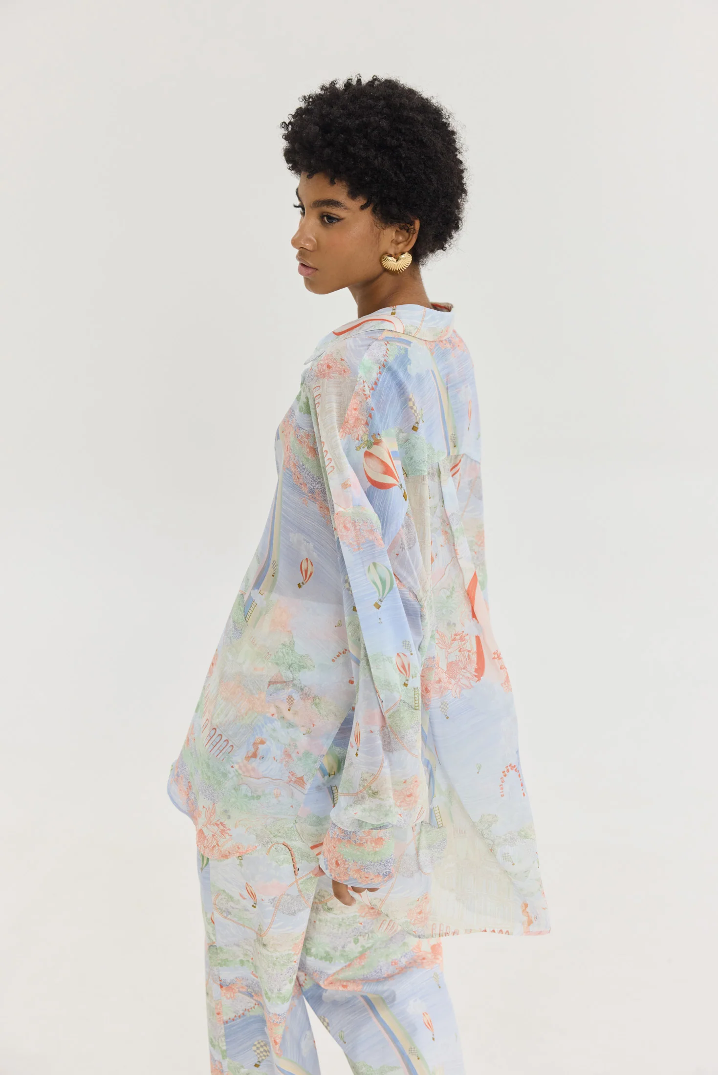 Πουκάμισο με pattern με παραμύθι σε γαλάζιες αποχρώσεις.