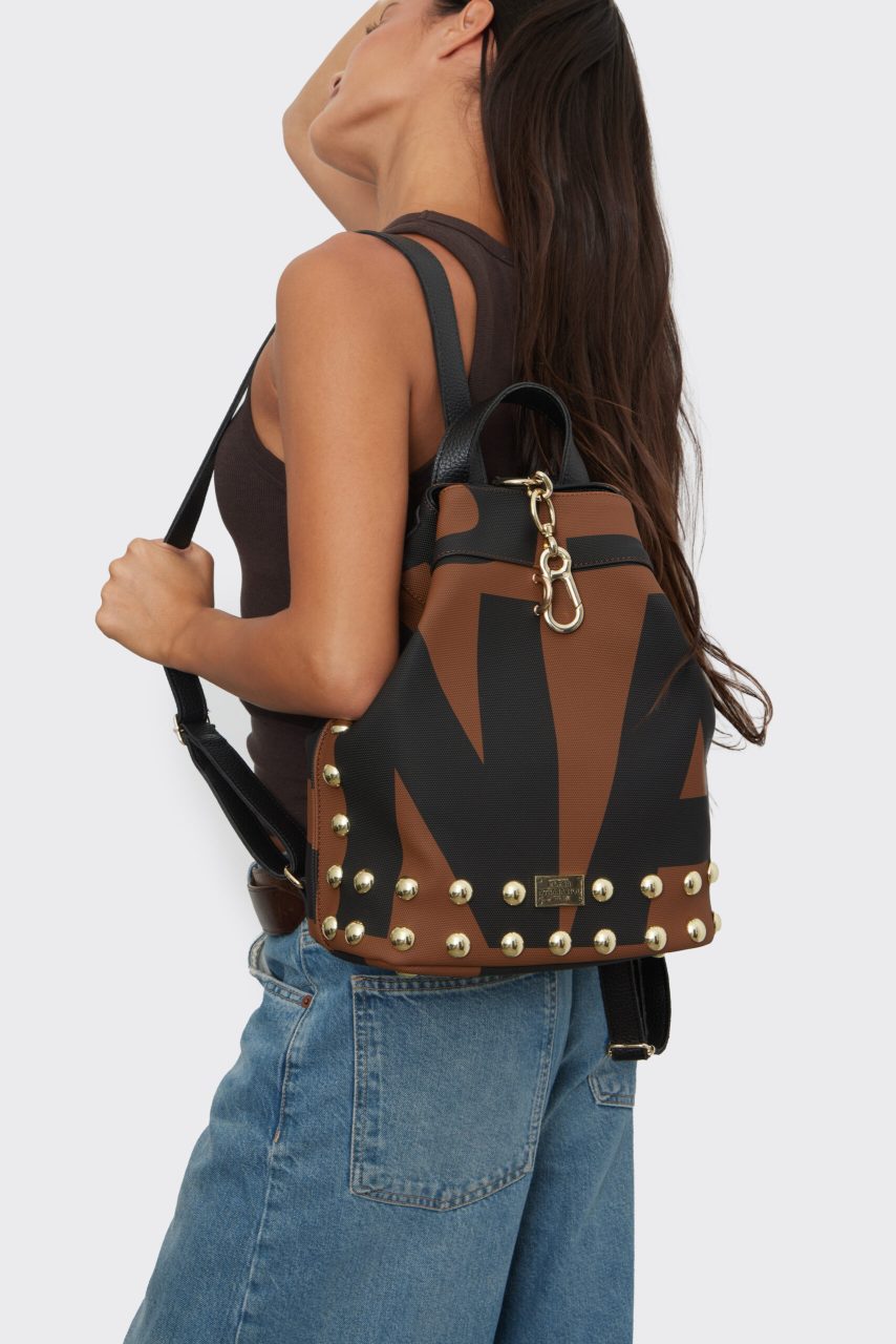 Δερμάτινη τσάντα πλάτης με χρυσές λεπτομέρειες.