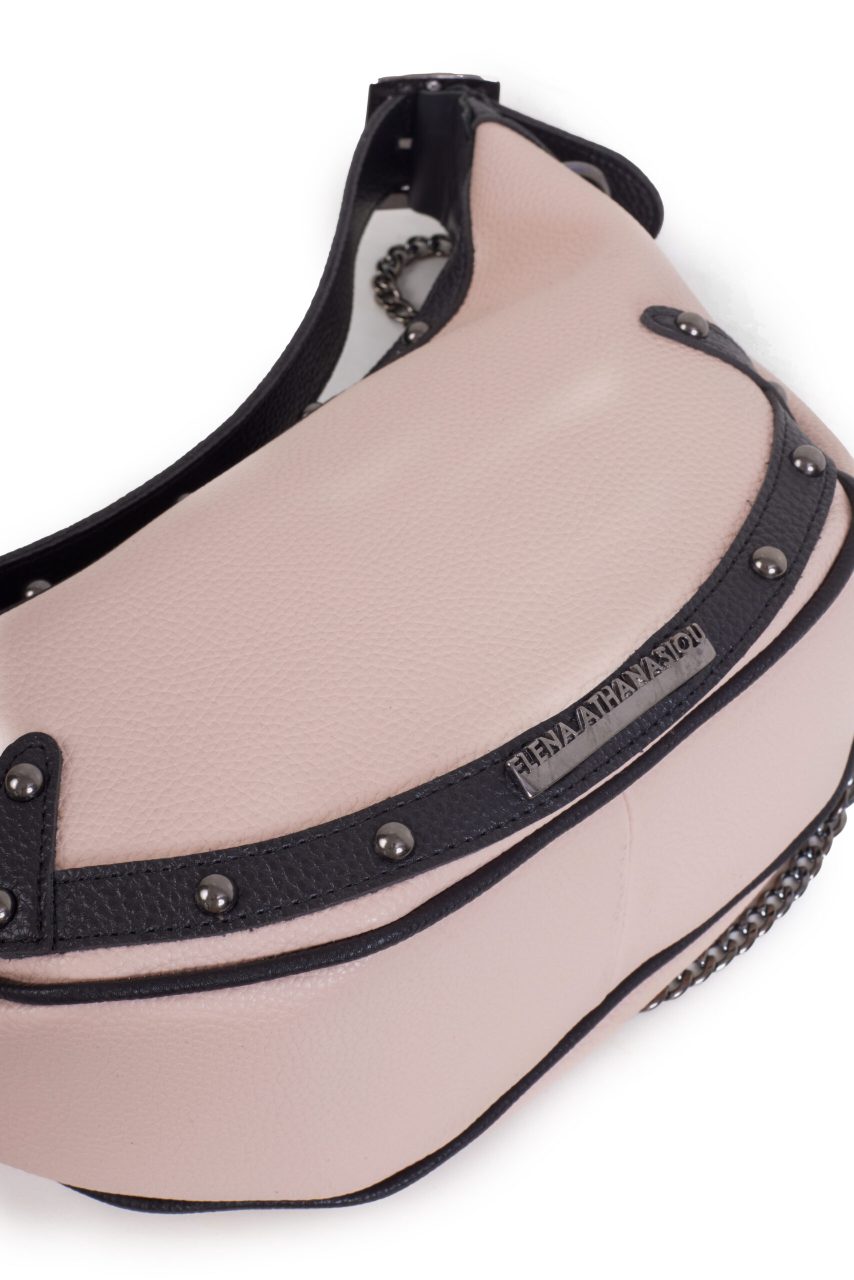 Ροζ τσάντα ώμου/χιαστί με μαύρες και νίκελ λεπτομέρειες.