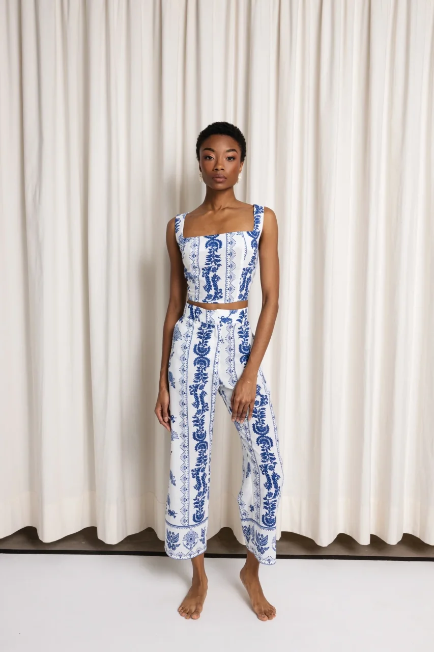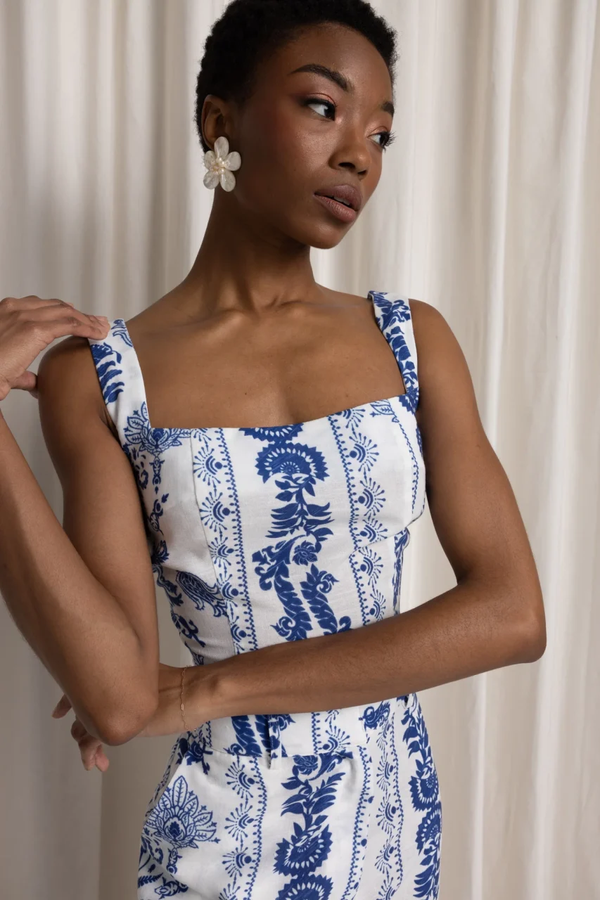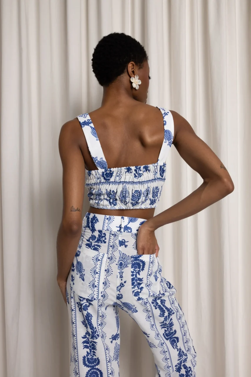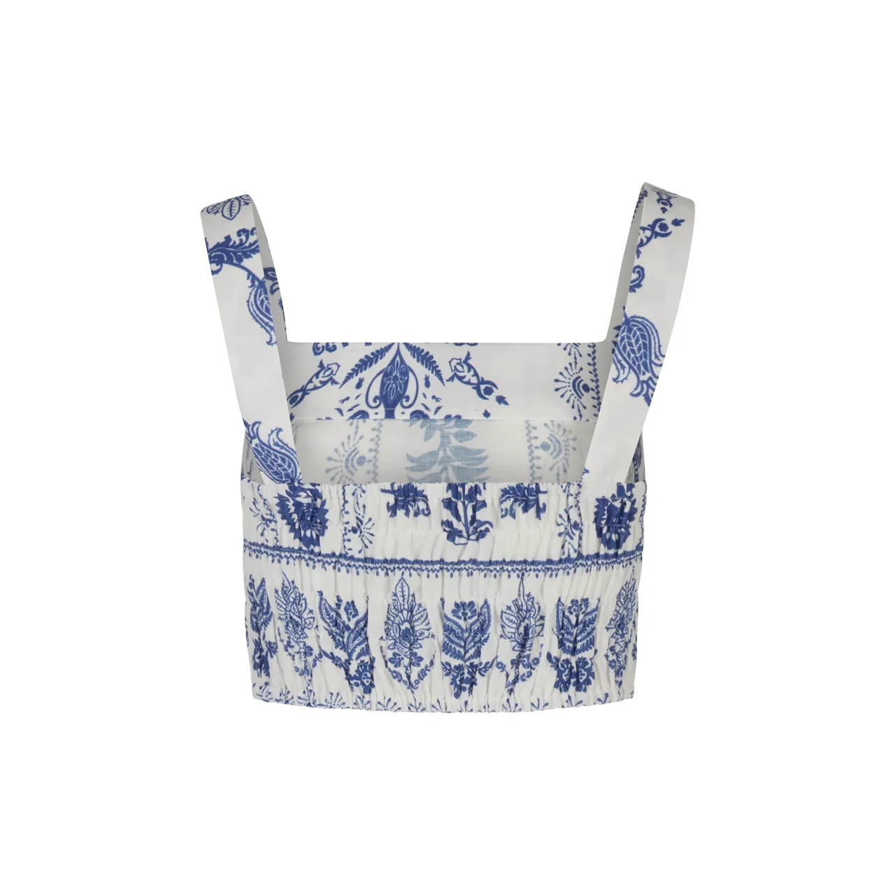 Κοντό τοπ σε αποχρώσεις του λευκού και του μπλε.