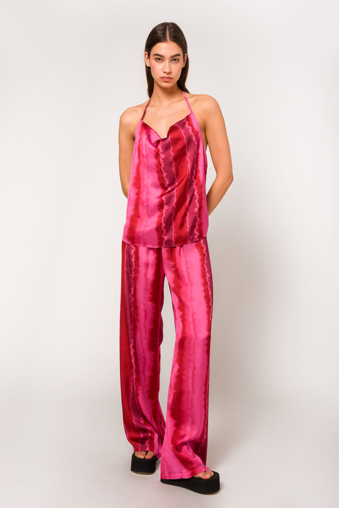 Σατέν τοπ που δένει στο λαιμό σε φούξια tie dye print.