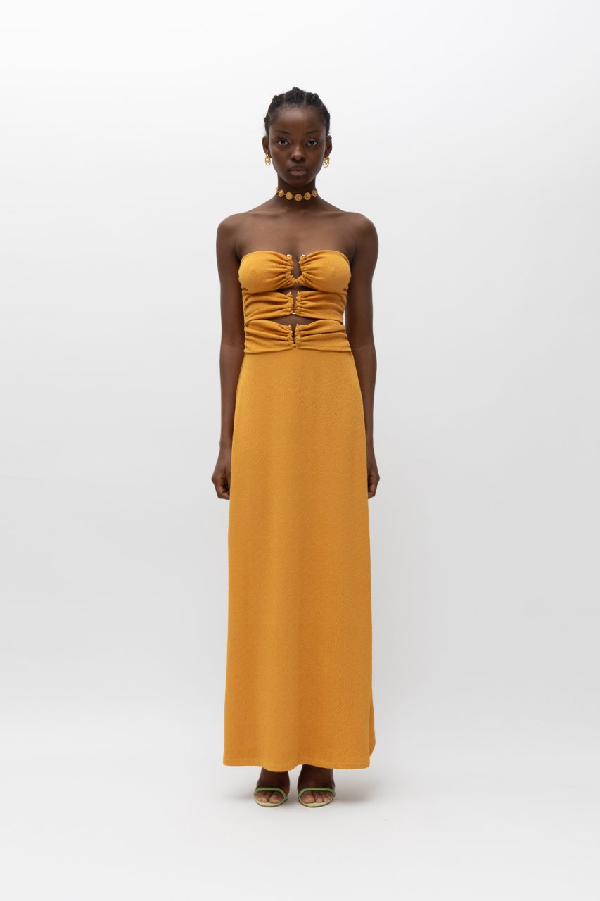 Στράπλες μακρύ φόρεμα.