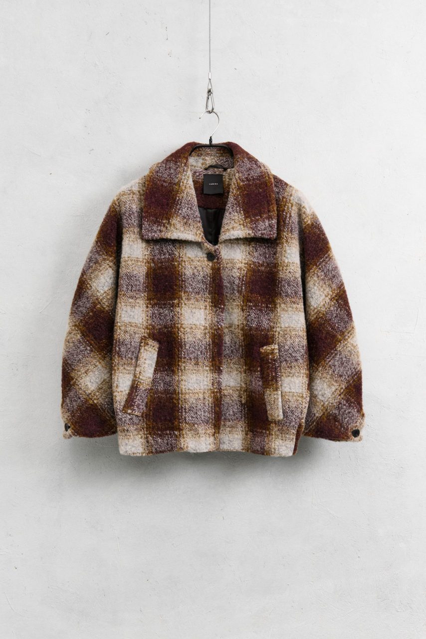Κοντό καρό παλτό σε αποχρώσεις του καφέ.
