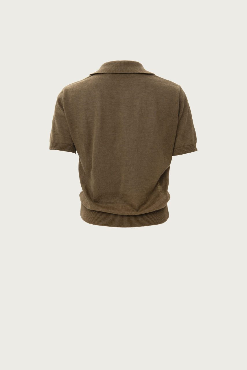 Khaki Polo Knitted T-Shirt With Rhombus Pattern