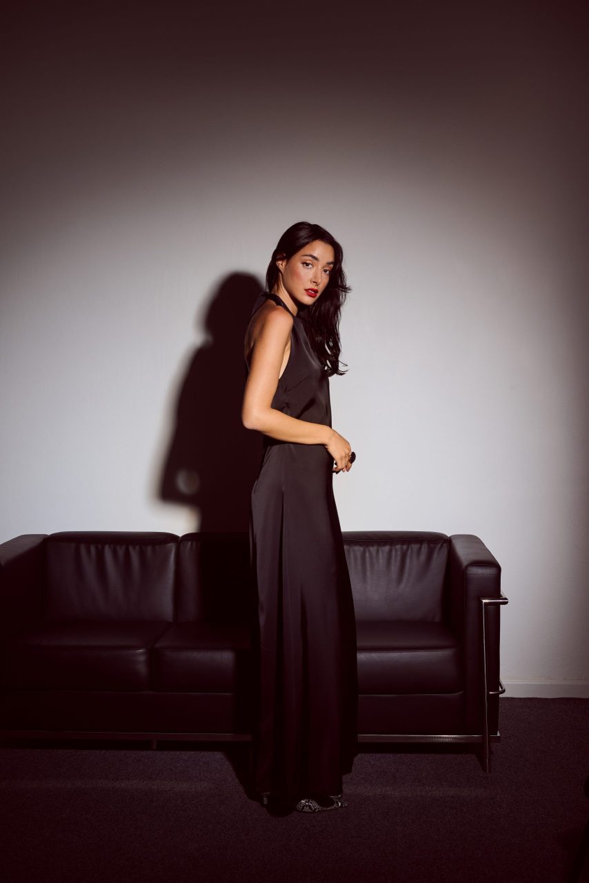Maxi φόρεμα με δέσιμο στο λαιμό σε μαύρο χρώμα.