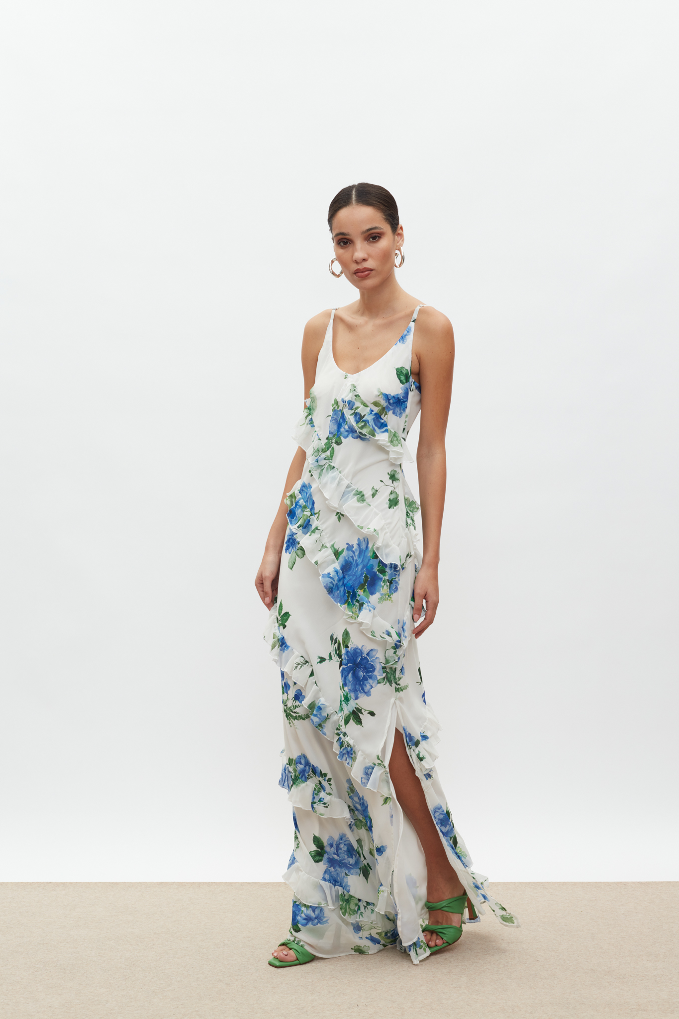 Maxi φόρεμα με βολάν σε όλο το μήκος.
