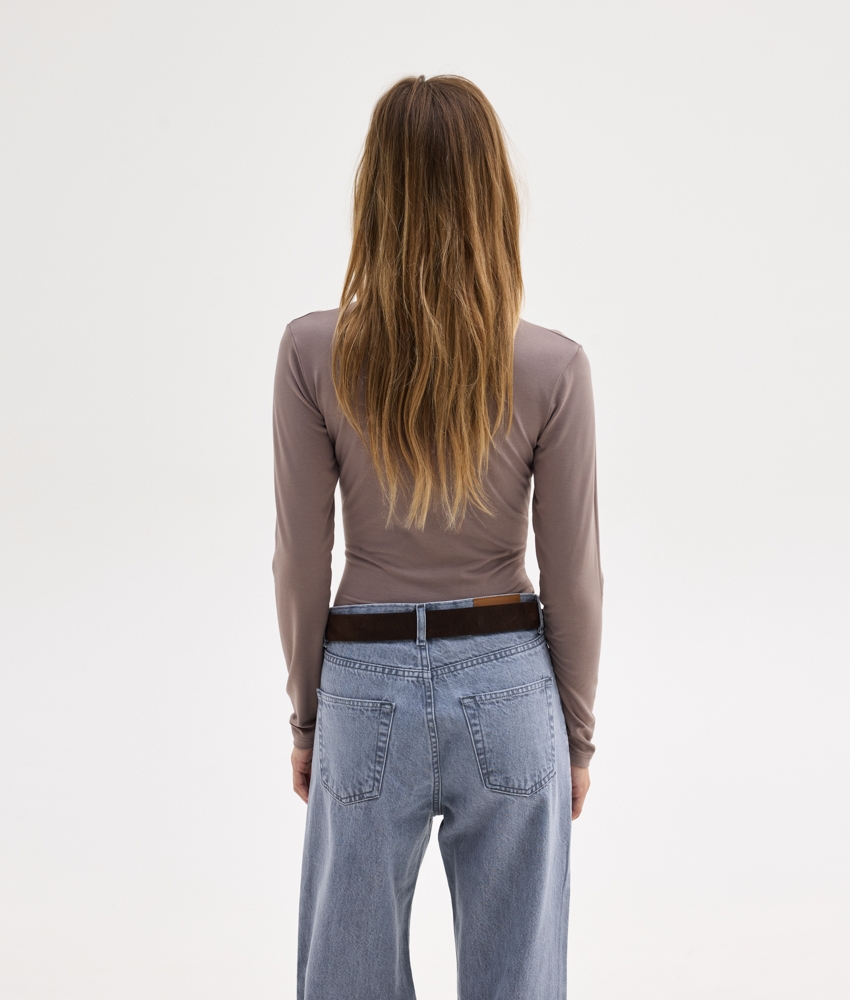 Μακρυμάνικο ζιβάγκο τοπ σε γκρι χρώμα.