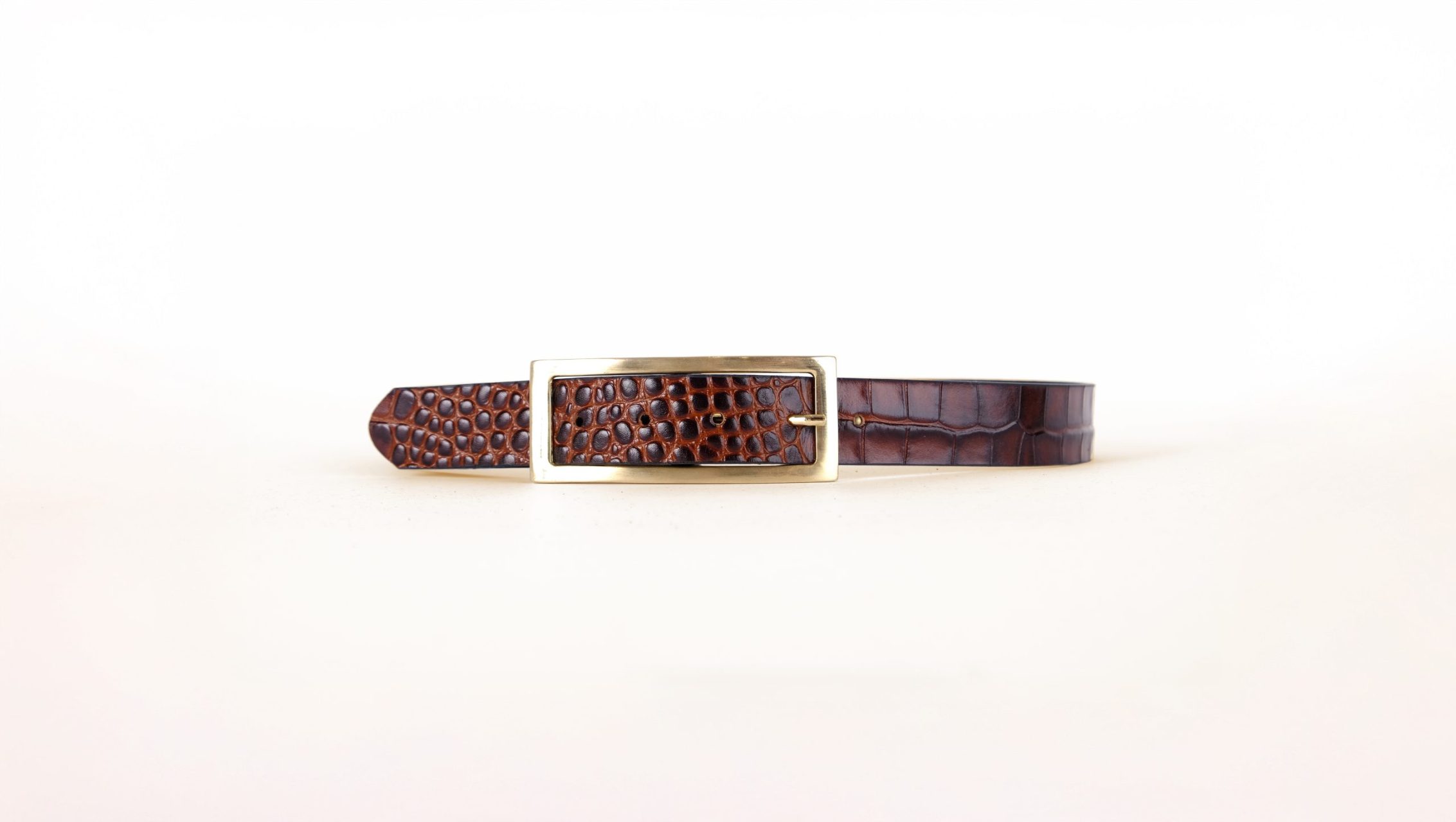 Δερμάτινη ζώνη σε καφέ χρώμα με ασημί λεπτομέρειες.
