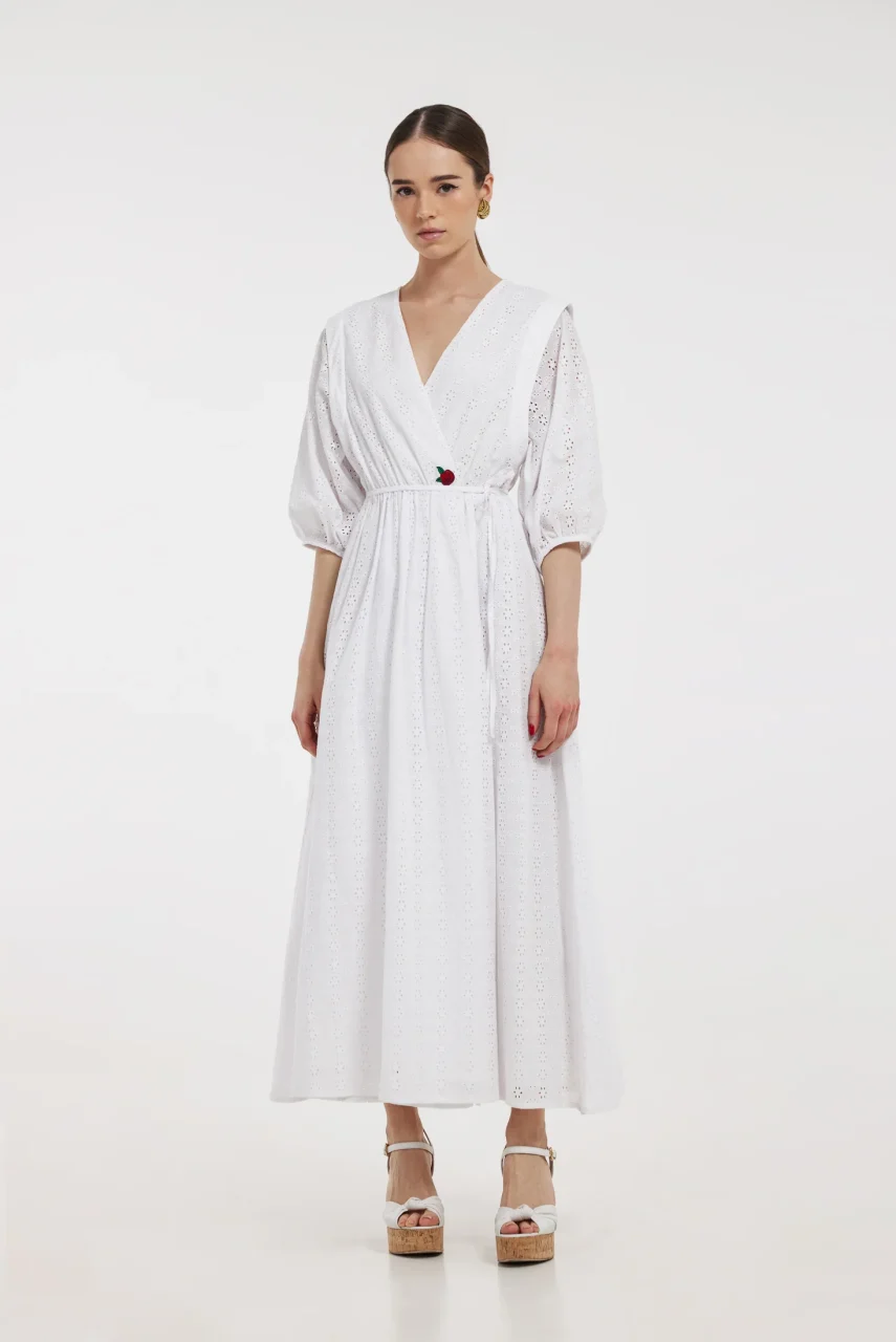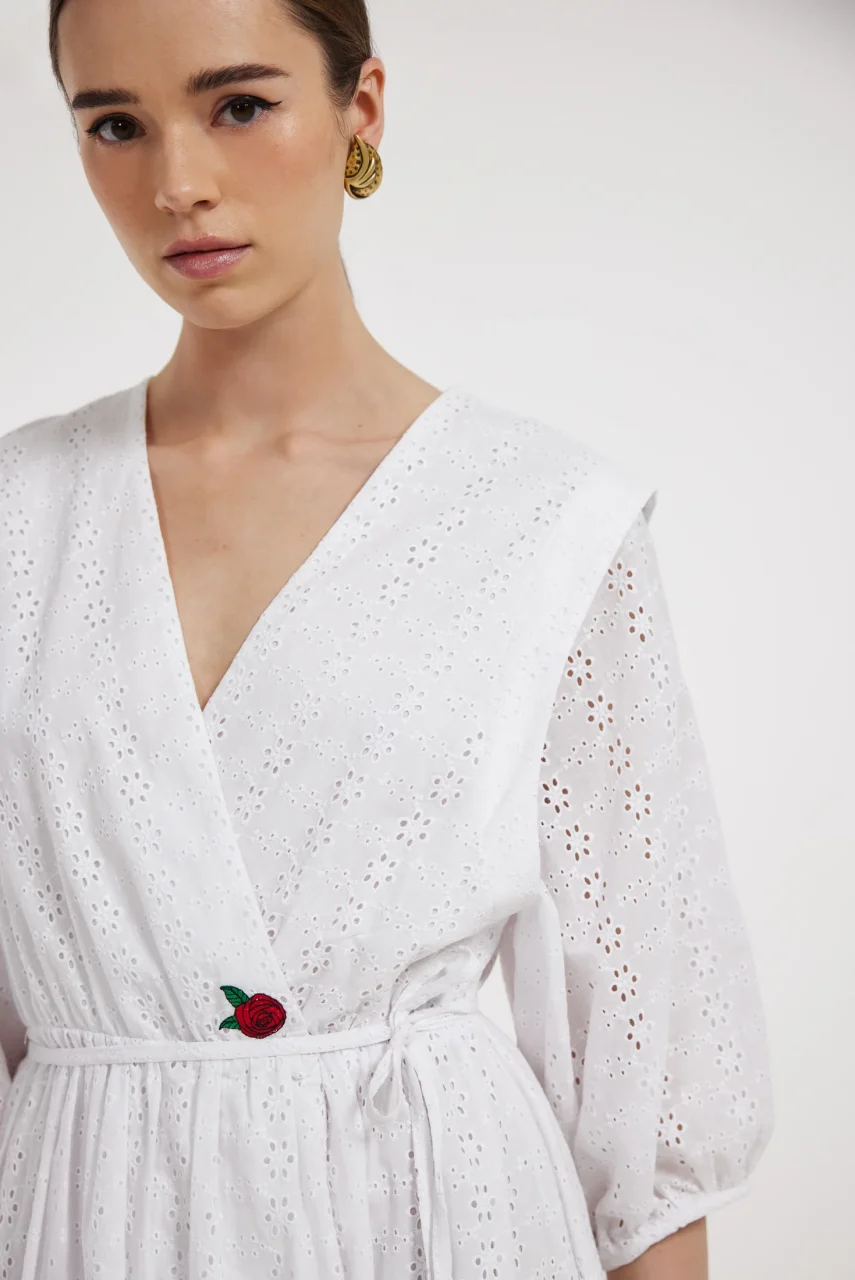 - Embroidered design με λευκά λουλούδια και tone to tone λευκή κλωστή