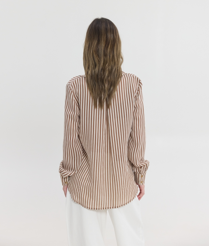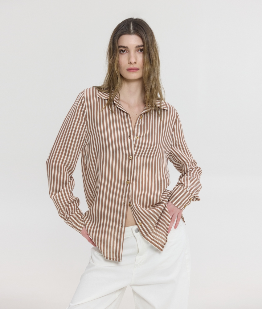 Ριγέ πουκάμισο σε καφέ απόχρωση.